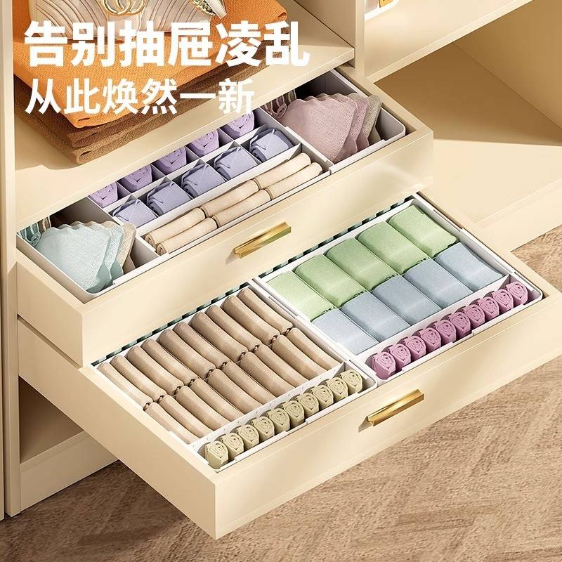 可伸缩内衣收纳盒家用三合一内裤 袜子衣物衣柜抽屉内置分隔整理盒