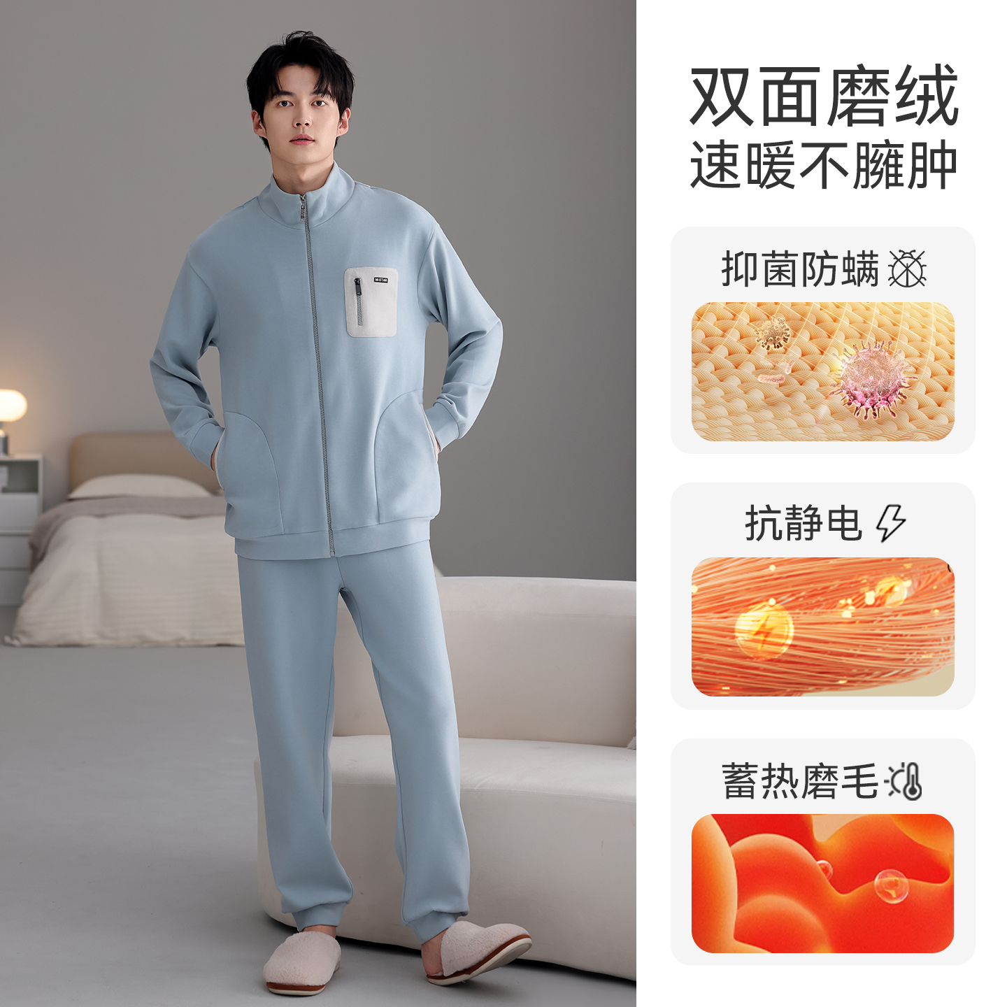 半边绒可爱加厚冬男士 有棵树睡衣女款 情侣家居服套装 成毅同款