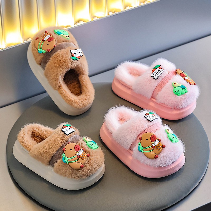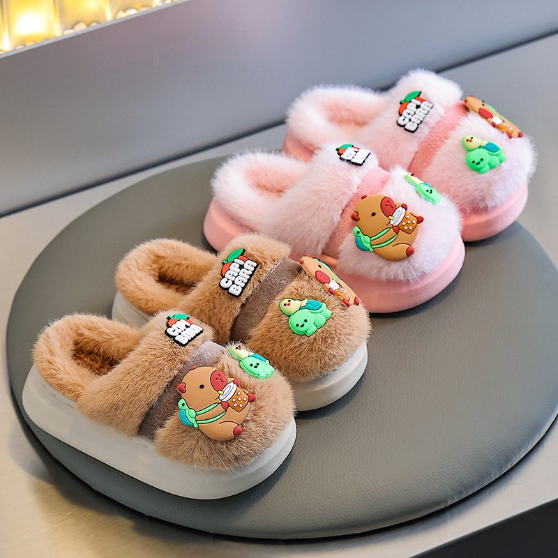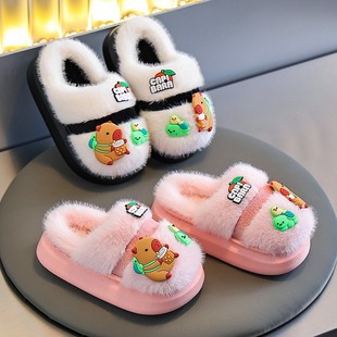 可爱防滑室内居家软底亲子宝宝拖鞋 卡皮巴拉儿童棉拖鞋 女童秋冬季