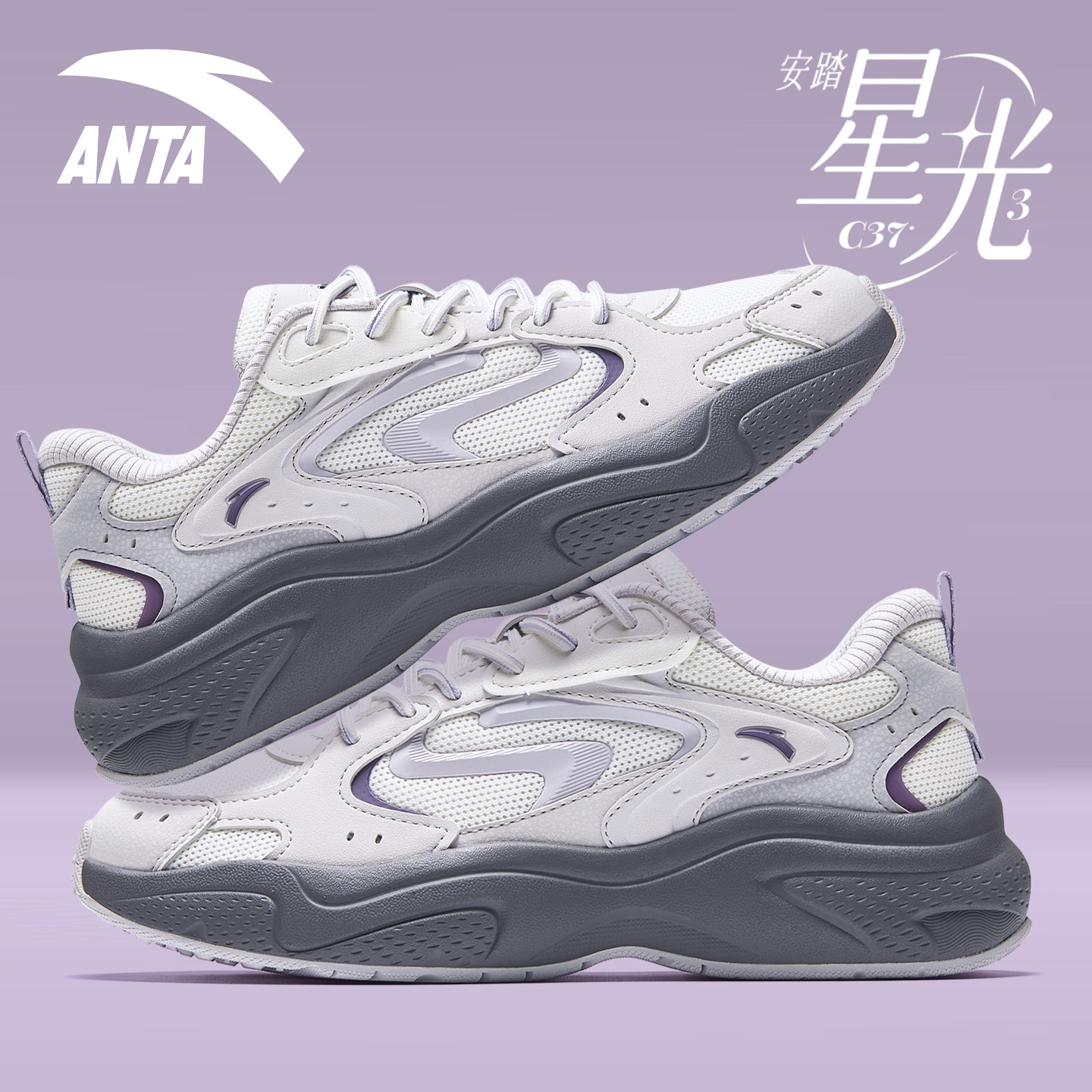 潮流复古软底运动鞋 官网旗舰星光3灰色厚底休闲鞋 女鞋 安踏老爹鞋
