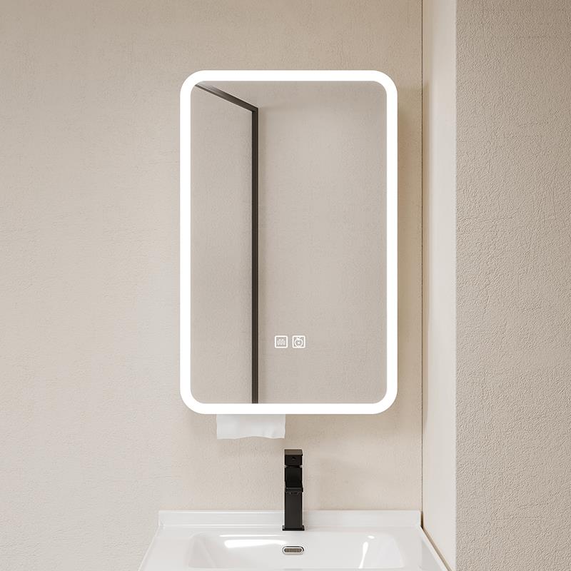 奶油圆弧浴室镜柜挂墙镜子卫生间太空铝智能镜箱储物柜多功能收纳