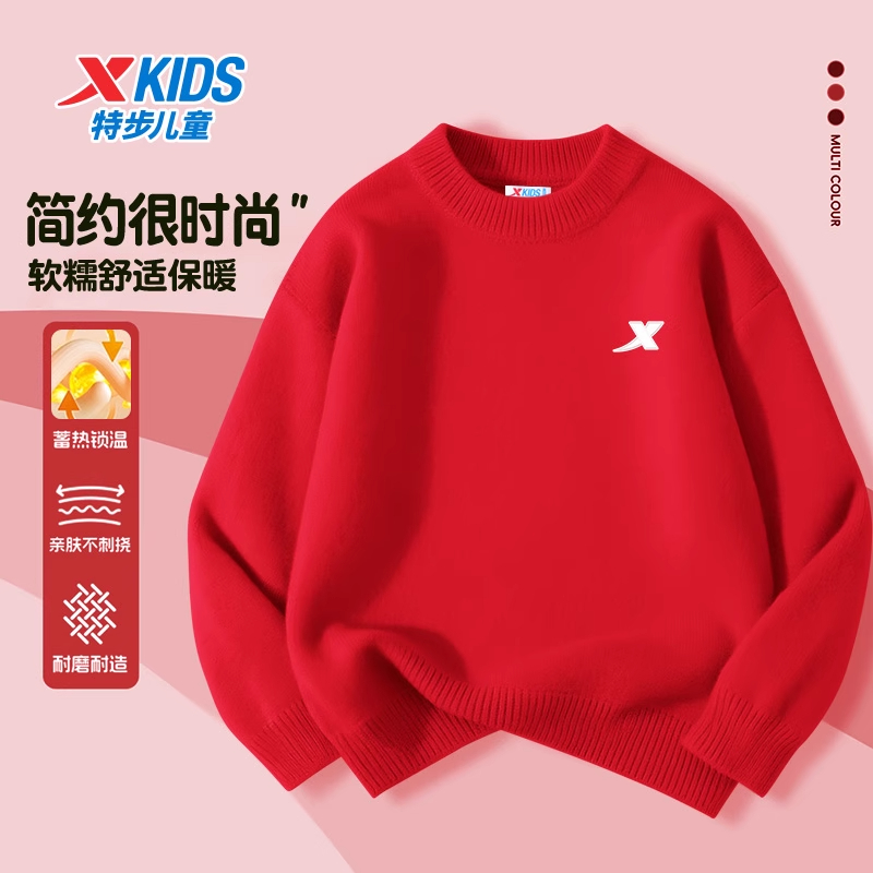 长袖 特步儿童毛衣男童2025秋冬季 针织衫 加厚保暖圆领潮流时尚 新款