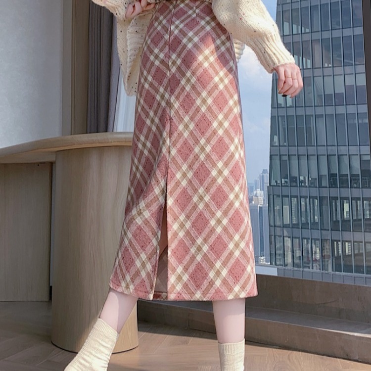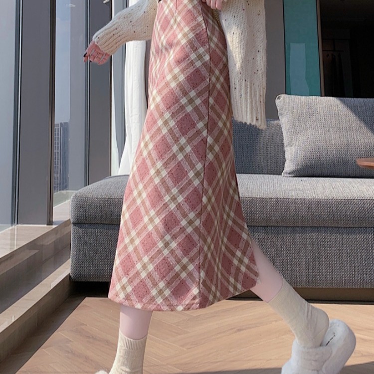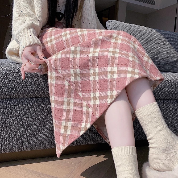 设计师款 佐丹奴高腰裙子女拼接格纹下摆松紧腰半身长裙女18465820