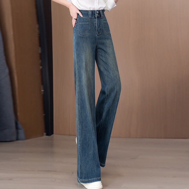 高腰宽松直筒拖地微喇叭裤 新款 子 女士2025年春秋季 复古牛仔阔腿裤