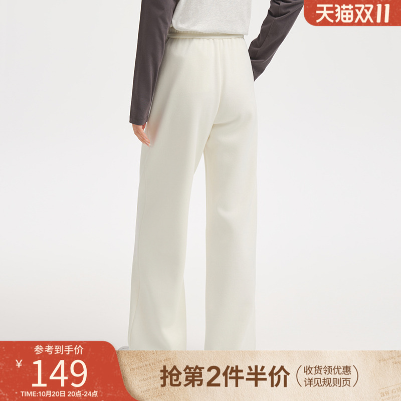 胖mm梨型身材慵懒加厚运动卫裤 女冬季 白色高腰显瘦加绒阔腿裤 大码