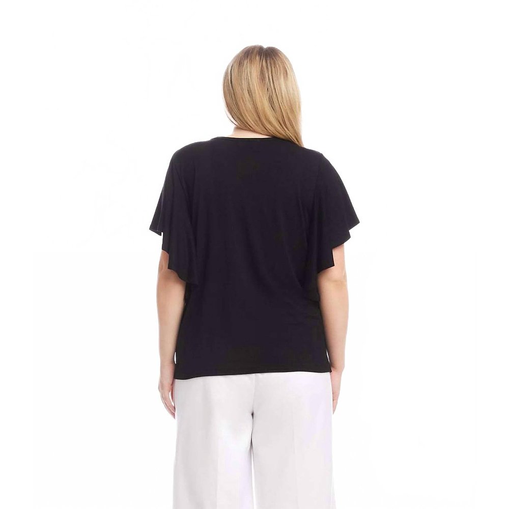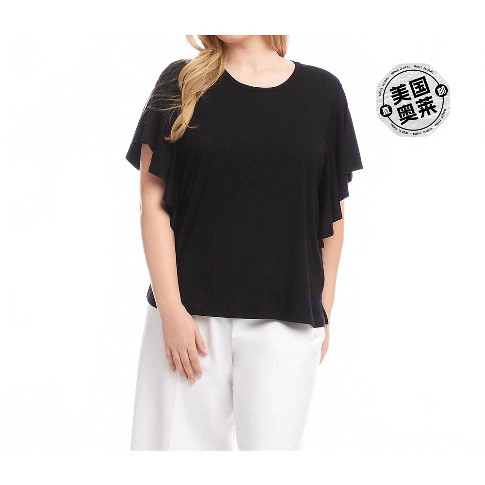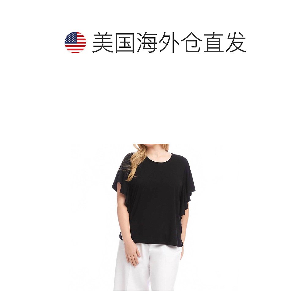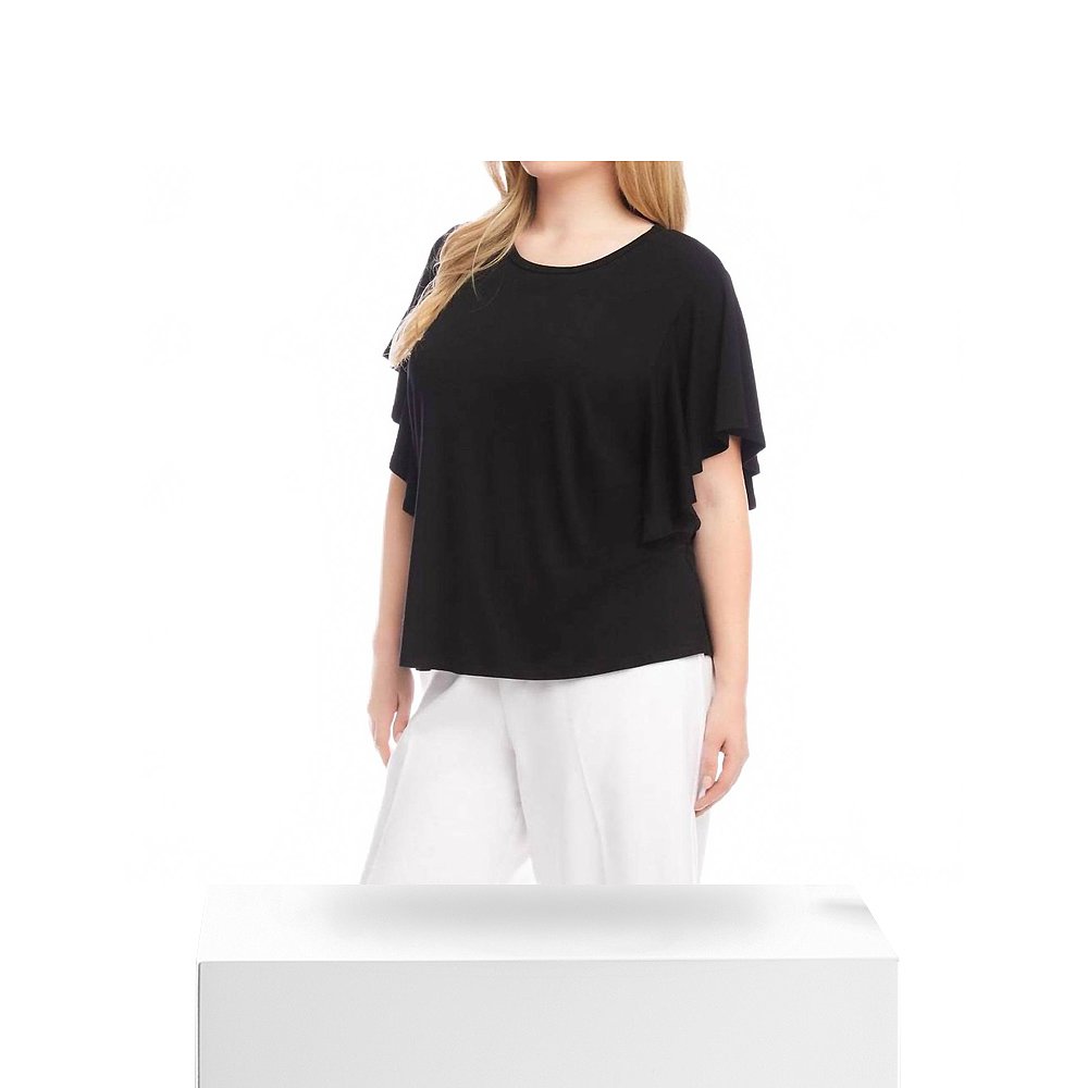 Crew Neck Black kaneFlutter Sleeve Plus 自营karen Top