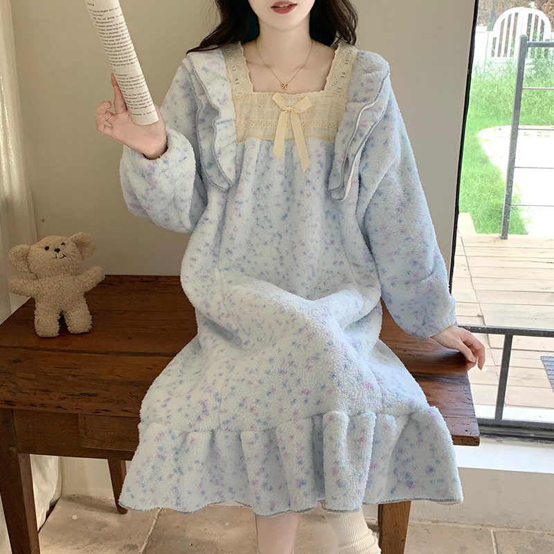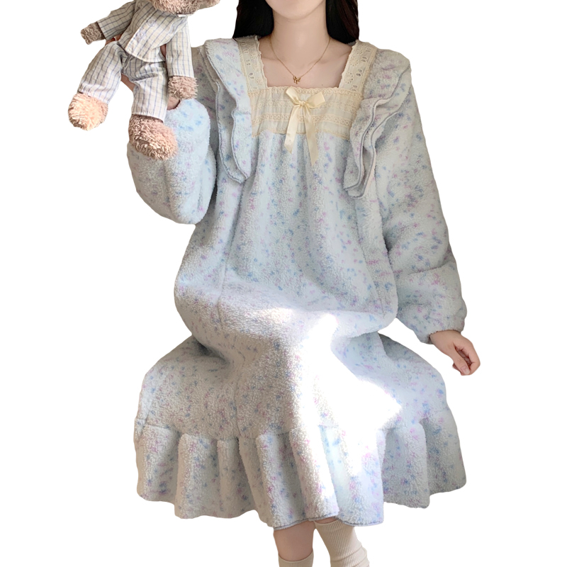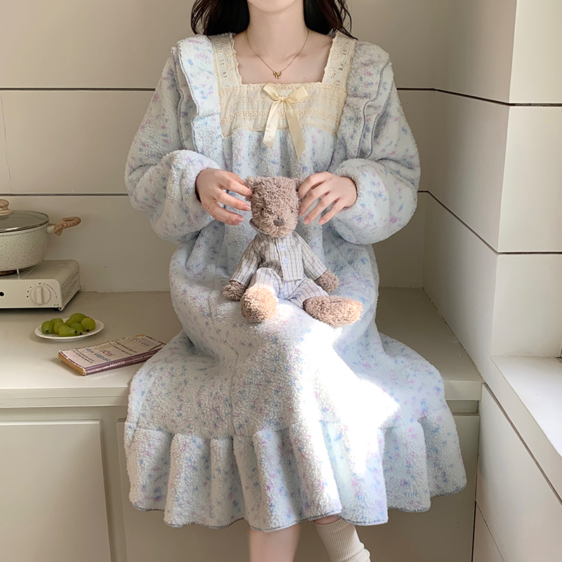 珊瑚绒睡裙女秋冬季 加绒加厚公主风甜美半边绒睡衣家居服 2025新款