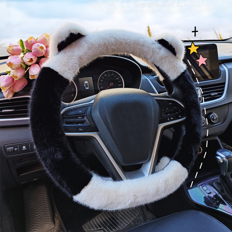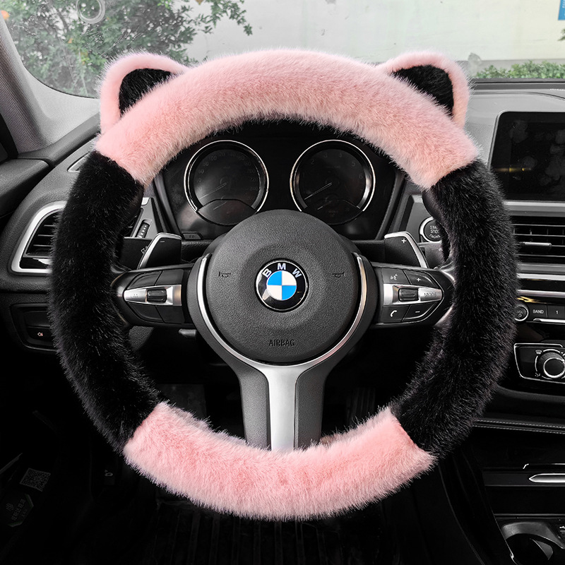 汽车方向盘套冬季 猫耳朵网红女冬天毛绒防滑车把套 保暖可爱个性