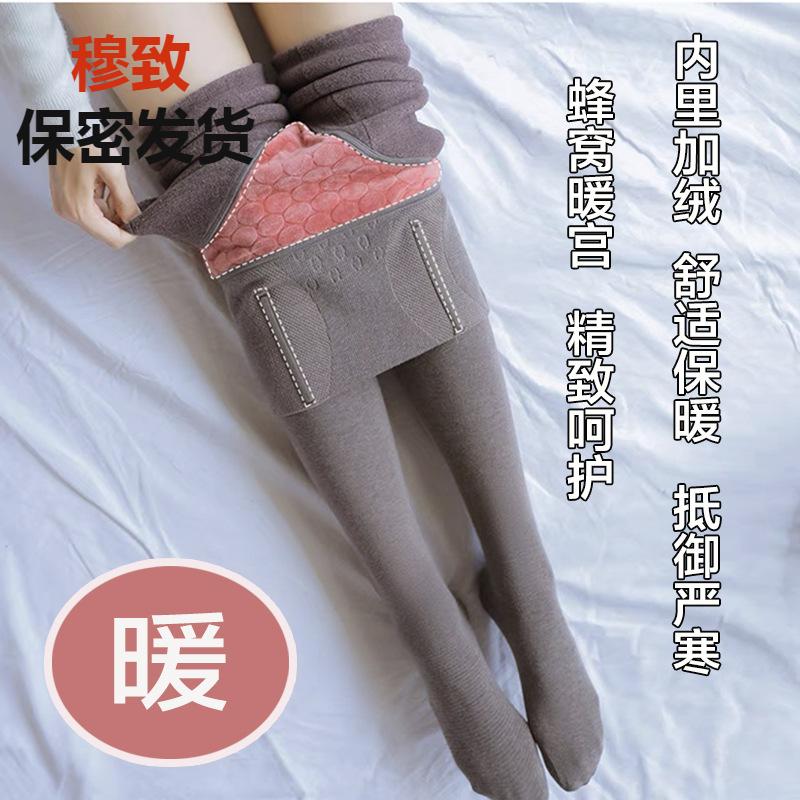 袜黑色显瘦外穿提臀收腹保暖棉裤 打底裤 女秋冬加绒格雷系灰色连裤