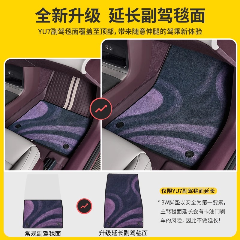 3W全TPE双色注塑适用于小米YU7脚垫尾箱垫 YU7鸢尾紫内饰专用