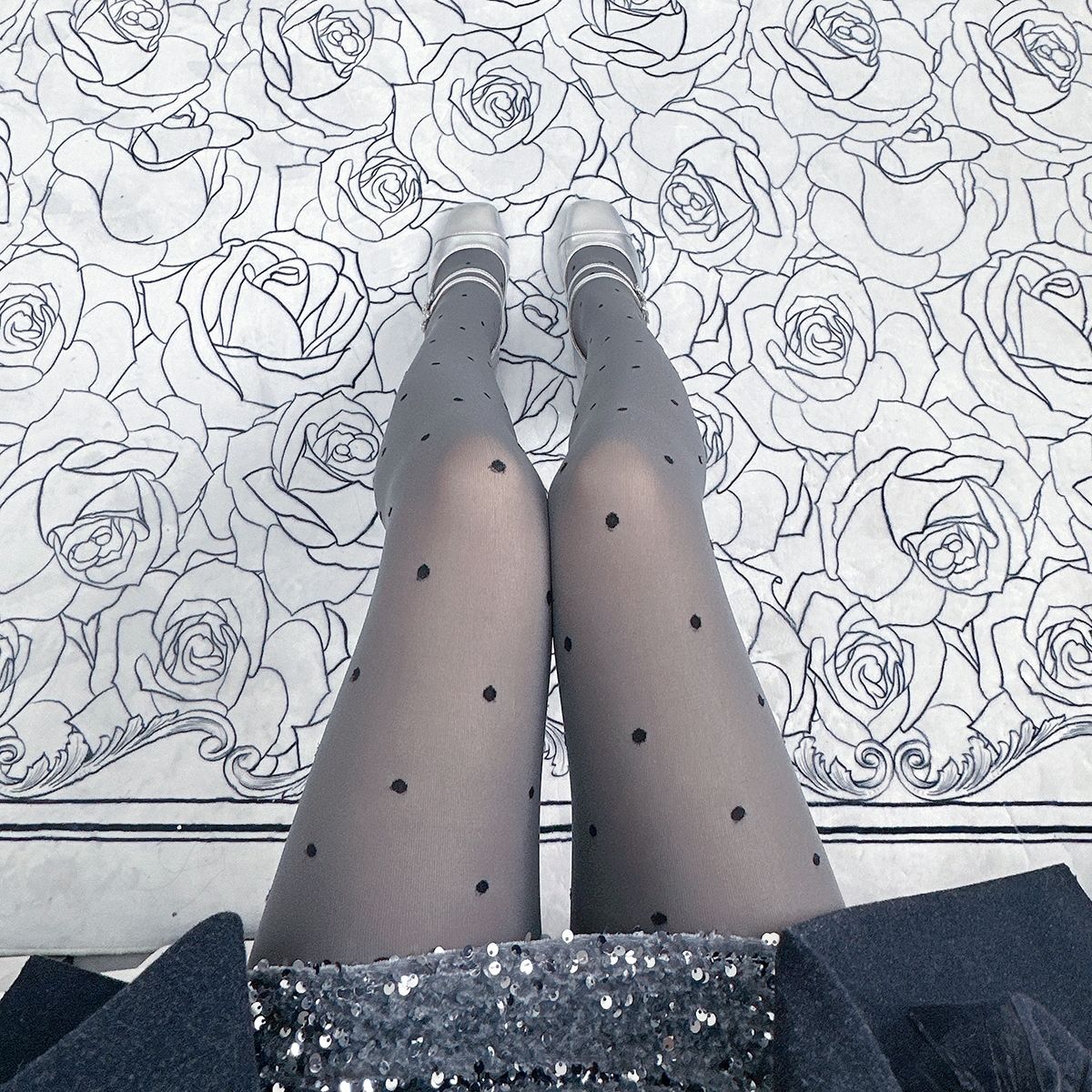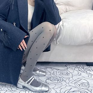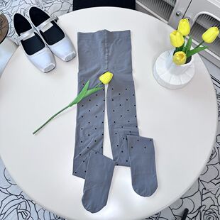复古格雷系灰色爱心打底裤 天鹅绒弹性显瘦圆点黑丝网红波点丝袜秋