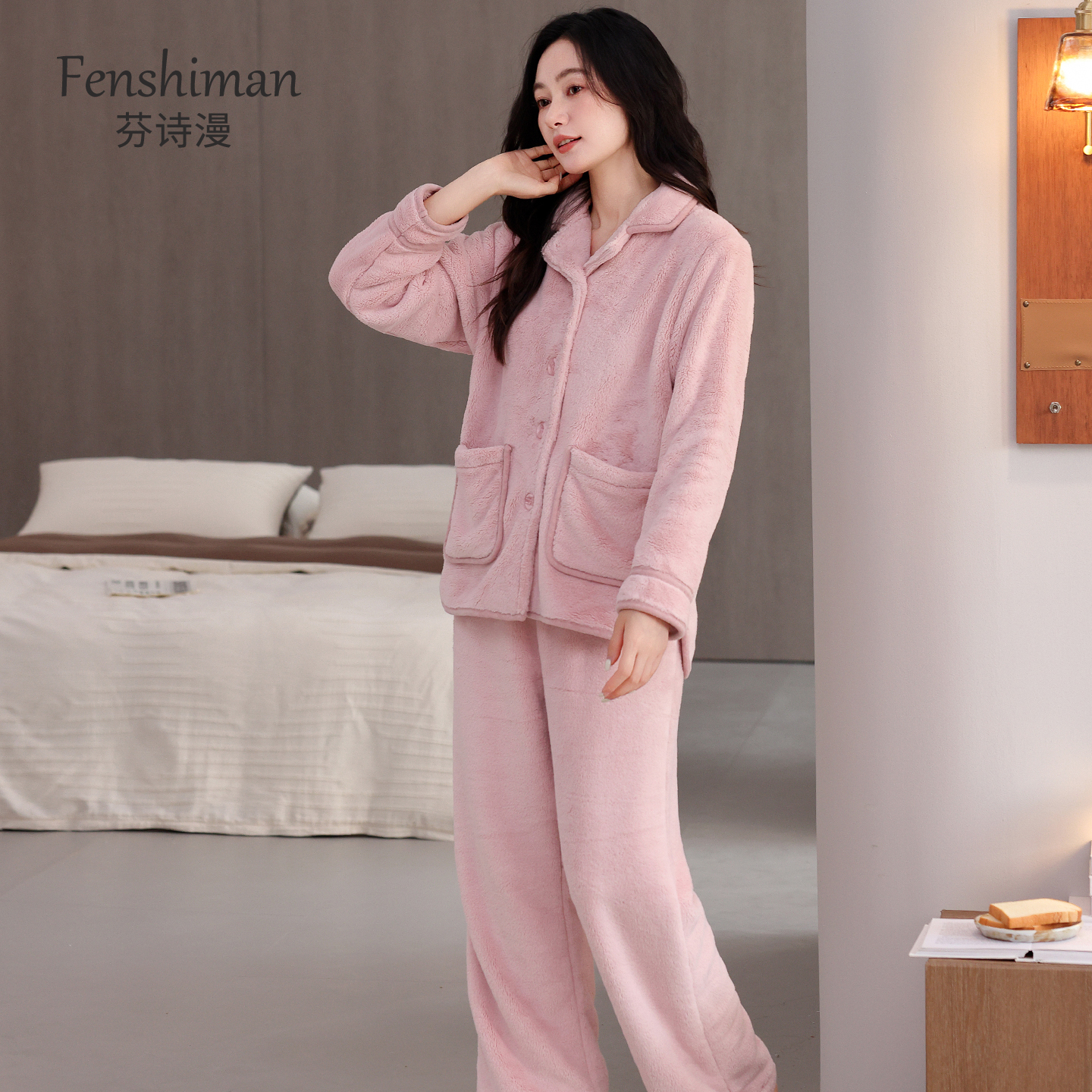 卡通秋冬款 2025年新款 法兰绒家居服 加厚保暖珊瑚绒套装 睡衣女冬季