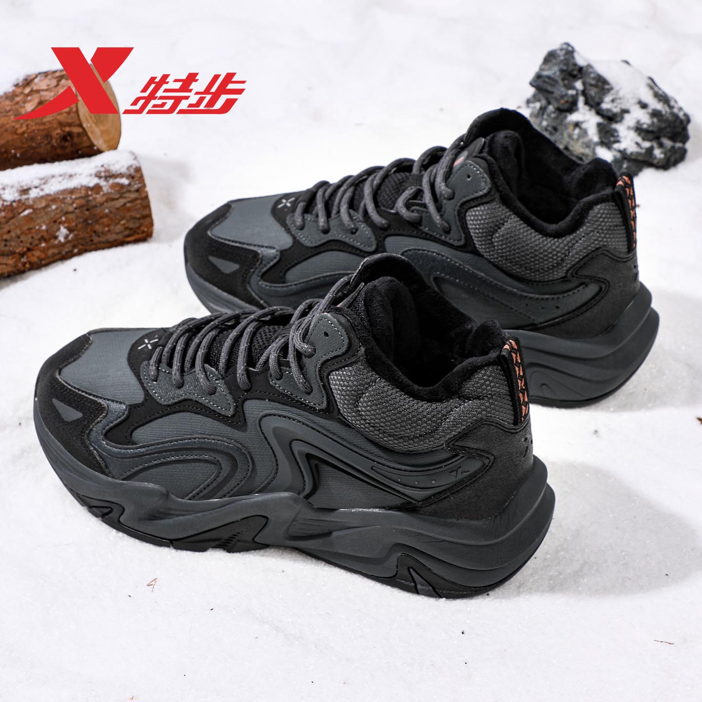 运动鞋 男鞋 2025新款 高帮户外鞋 子 特步冬季 防水防滑鞋 加绒保暖棉鞋