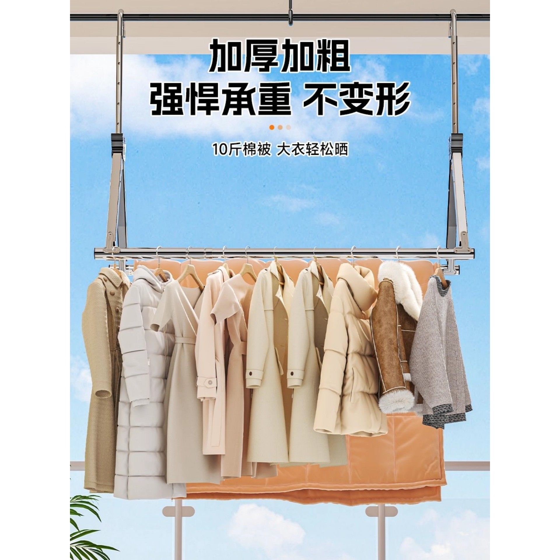 不锈钢晾衣杆阳台升降伸缩晾衣架悬挂式 凉晒被子床单专水槽沥水袋