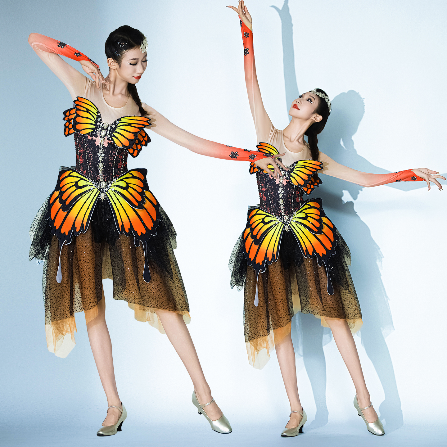 化蝶成人女大型舞台服装 开场舞蹈服三只蝴蝶表演服歌伴舞演出服装