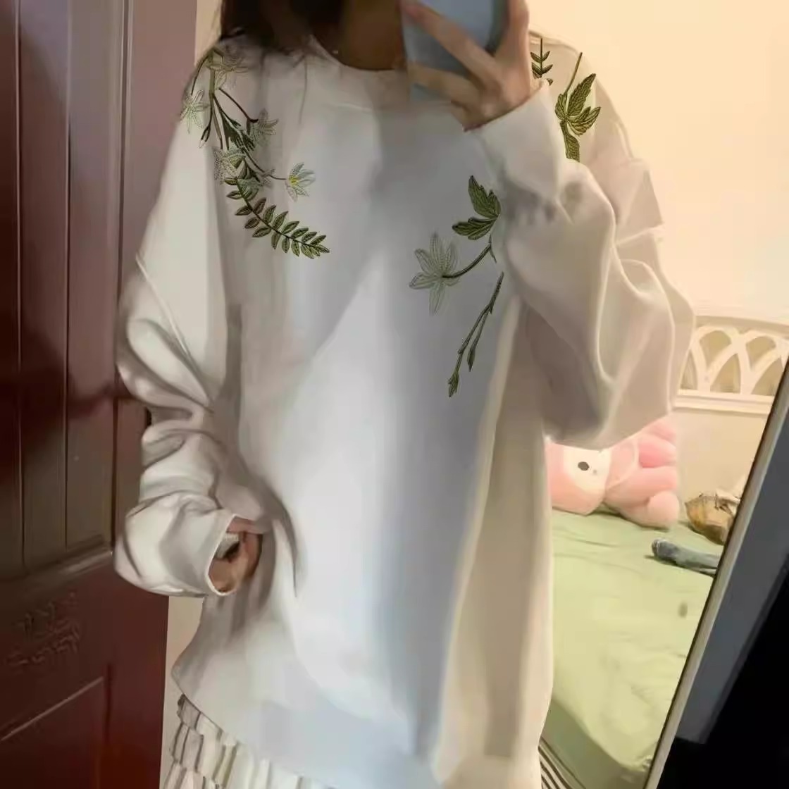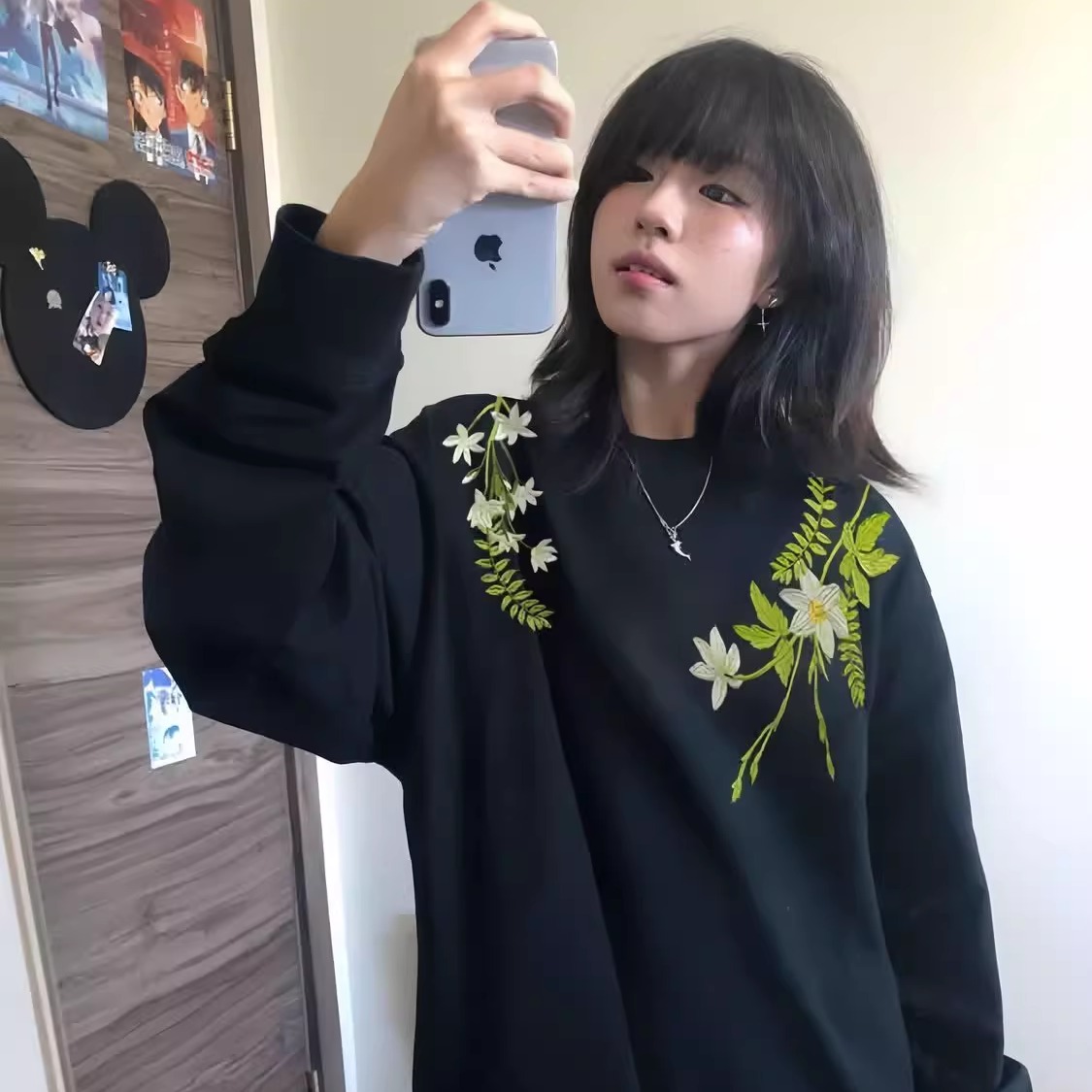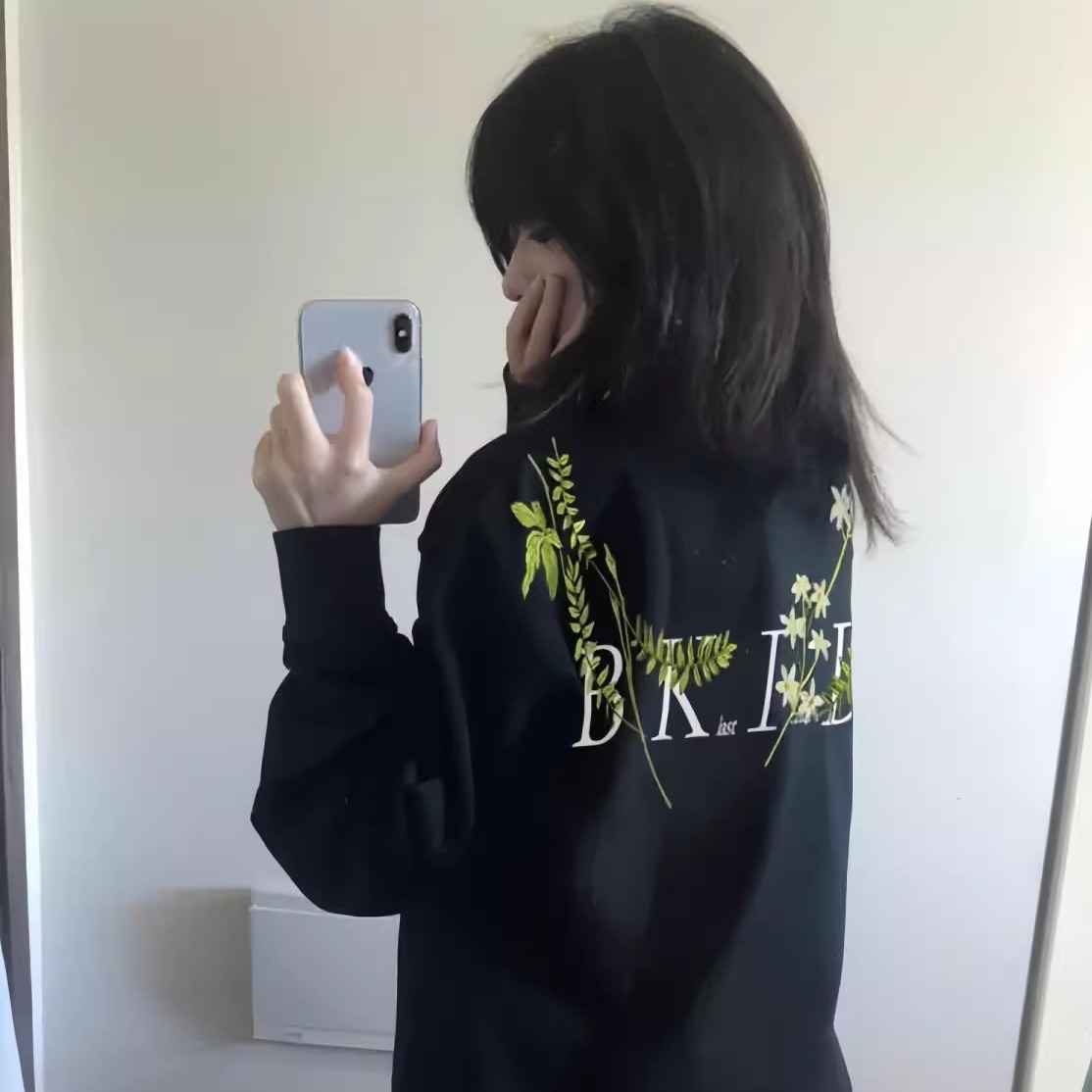 国风潮牌美式 设计感宽松情侣上衣 花卉印花圆领卫衣女秋冬2025新款