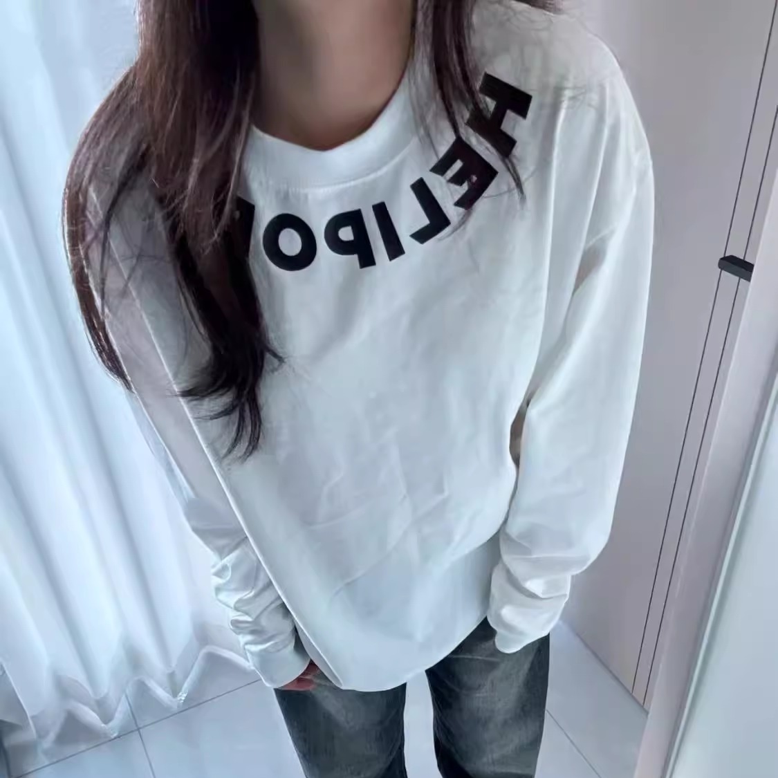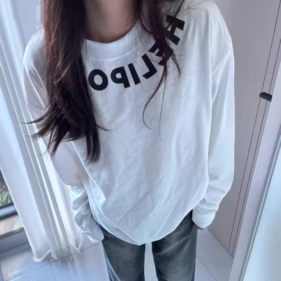 100%纯棉设计感字母印花长袖 小众慵懒BF高街潮牌上衣 t恤女ins美式