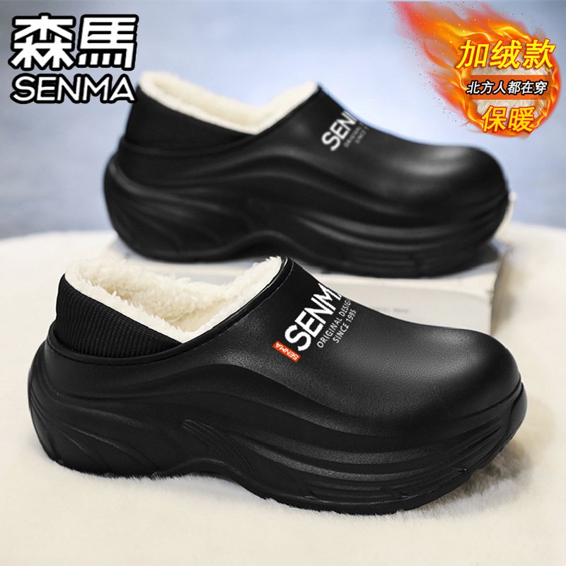 拖鞋 森马棉拖鞋 外穿防水防滑大码 情侣加绒加厚保暖包跟棉鞋 男冬季