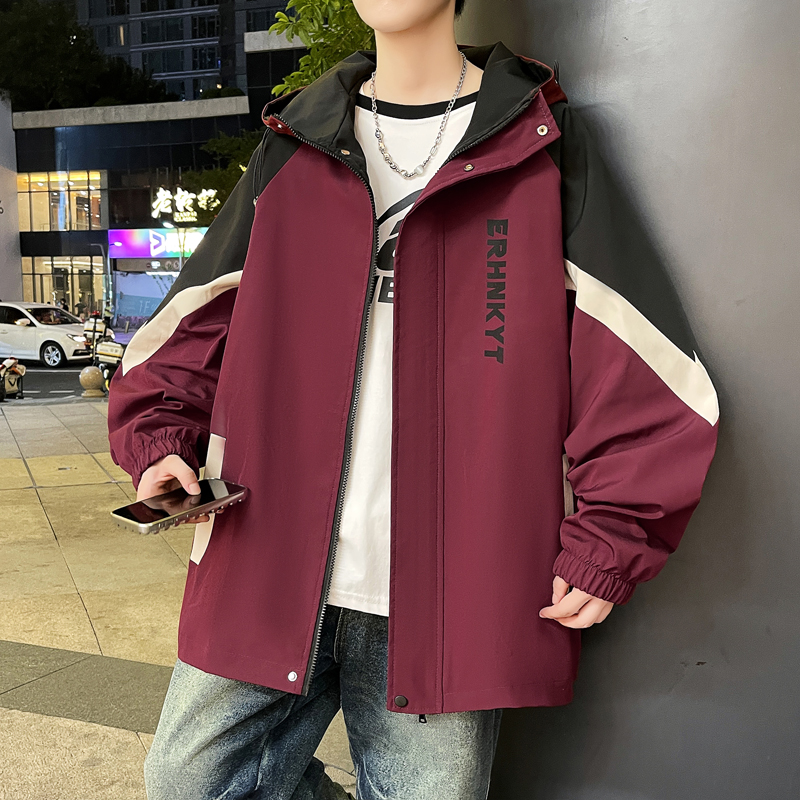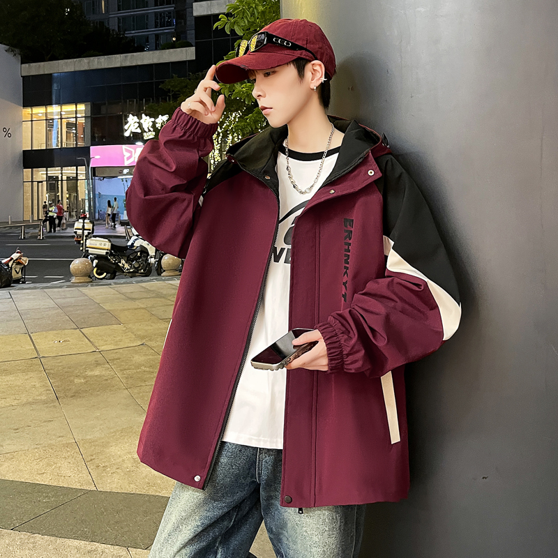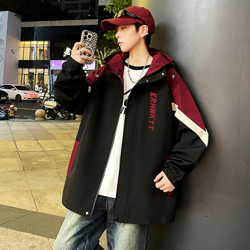 江南先生NewJNXS美式 复古透气立领撞色拼接夹克春秋男女宽松外套