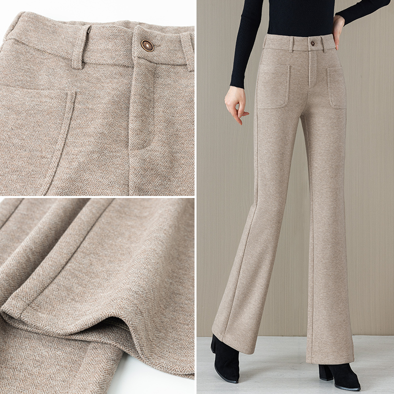 女士 高腰气质显瘦宽松垂感休闲阔腿长裤 毛呢微喇裤 女2025秋冬新款