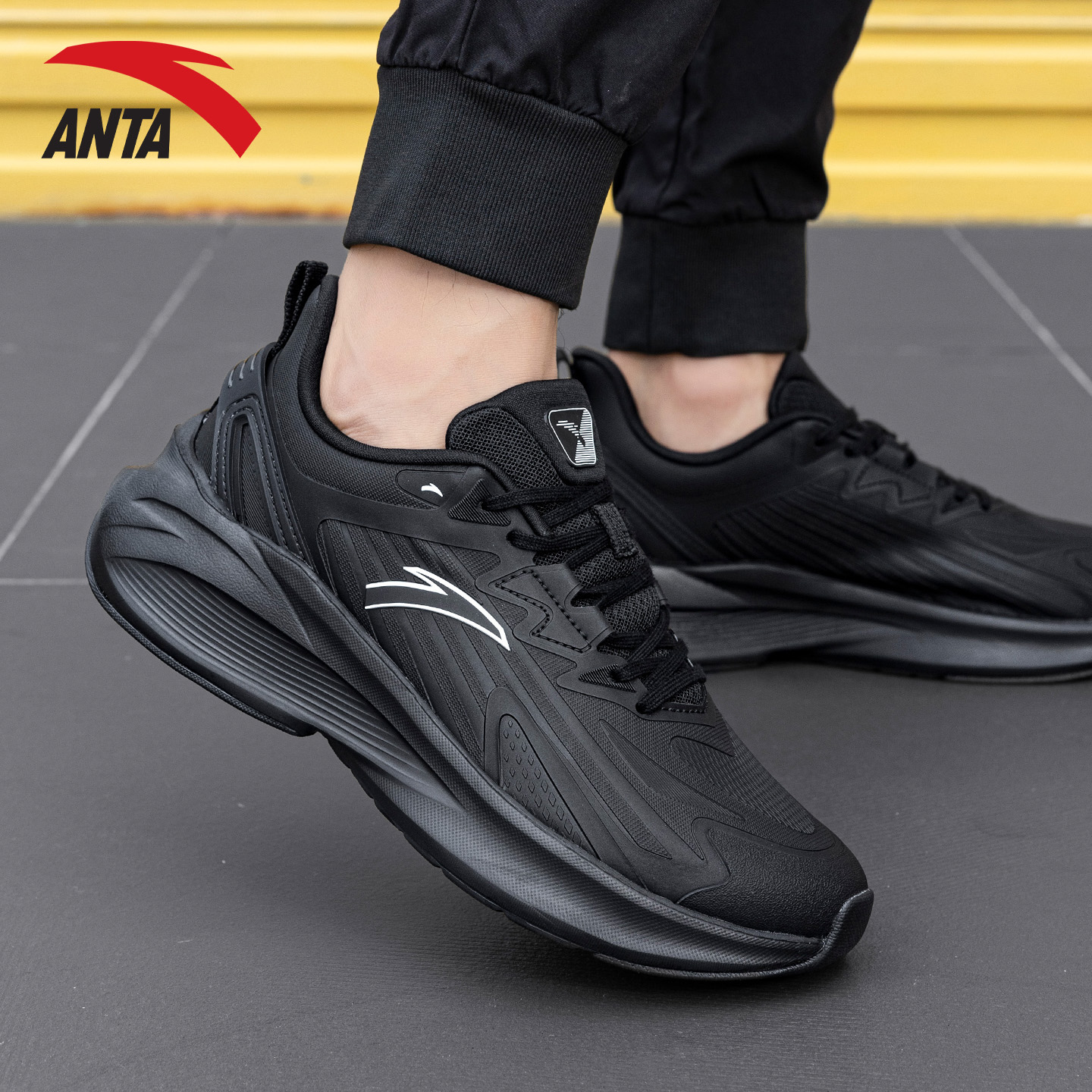 毒刺6代5代跑步鞋 男运动鞋 秋季 子黑武士配色跑鞋 男 皮面鞋 安踏男鞋