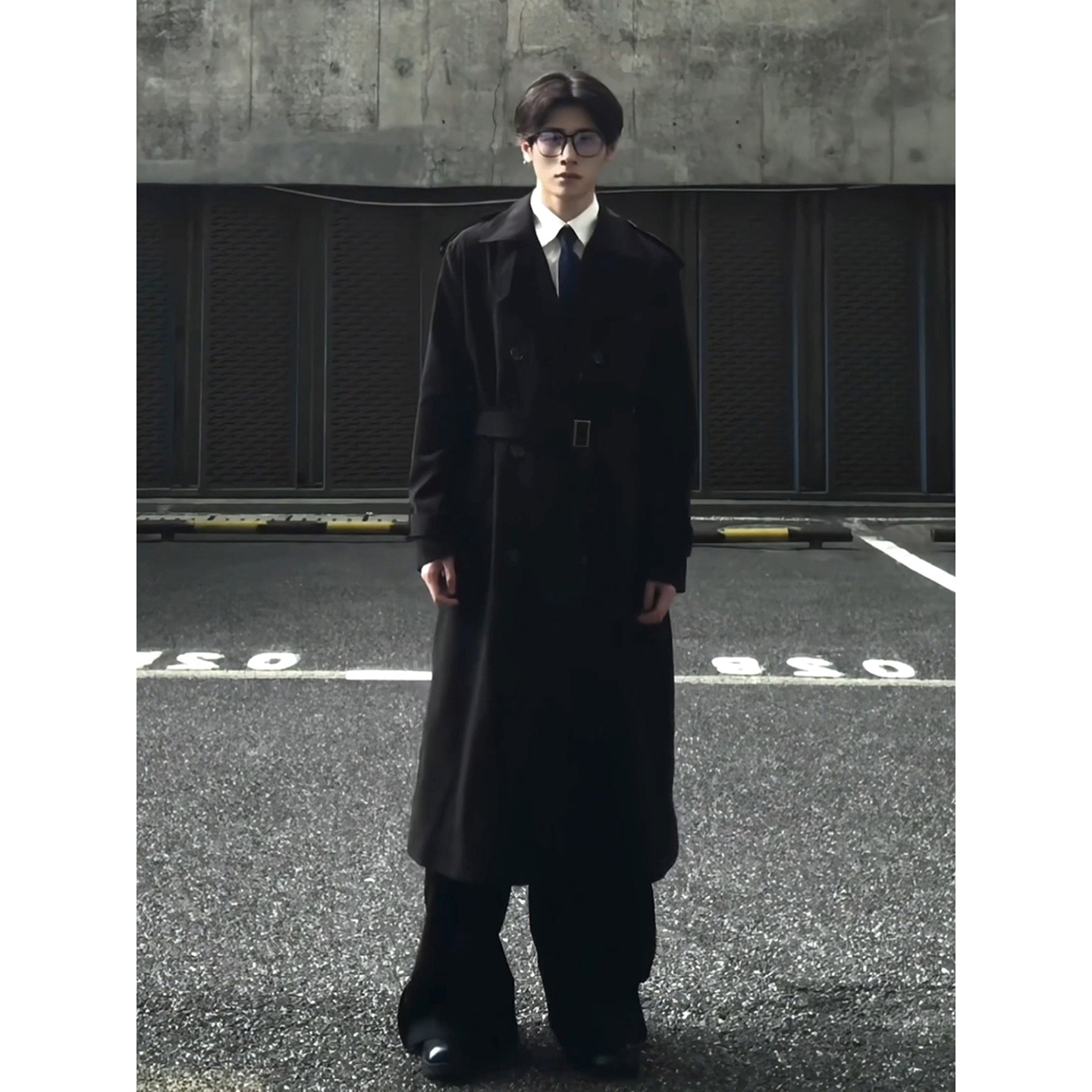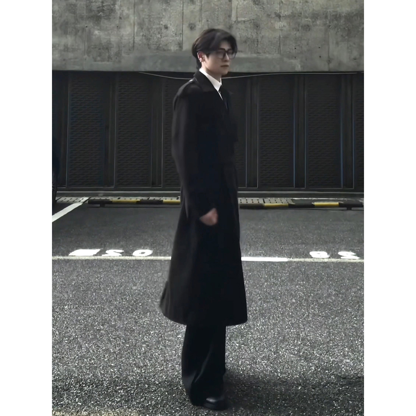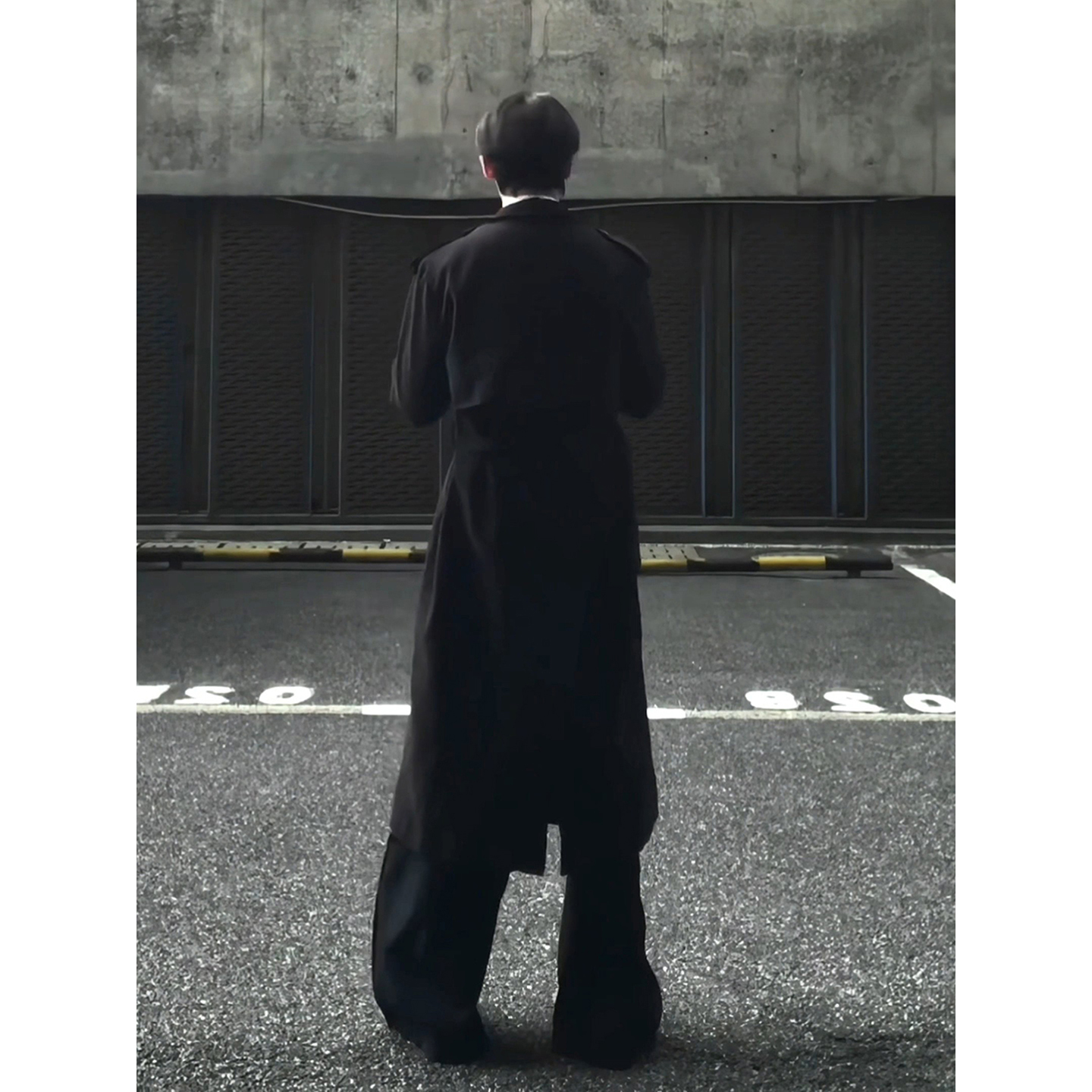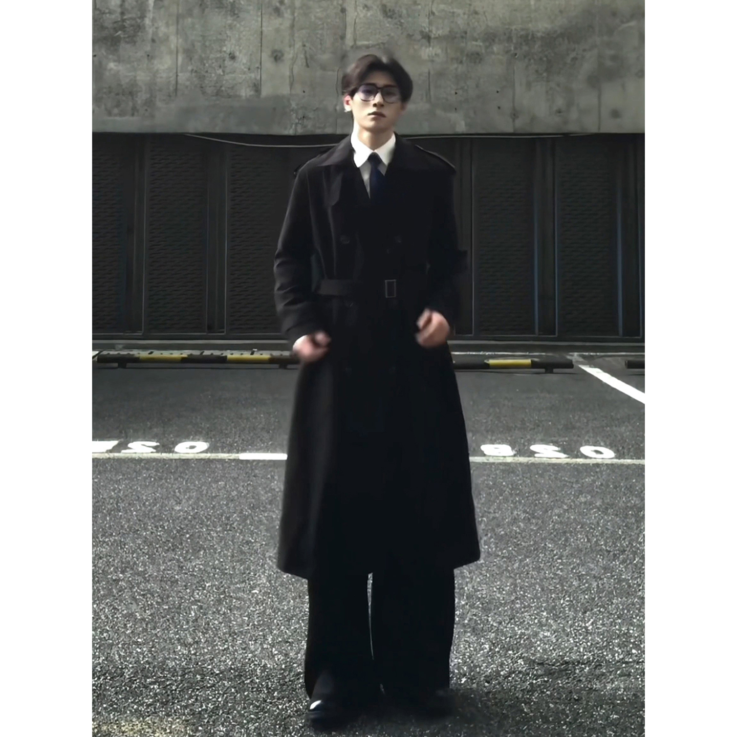 过膝无羊绒呢子风衣外套韩版 毛呢大衣男中长款 宽松落肩 新款 秋冬季