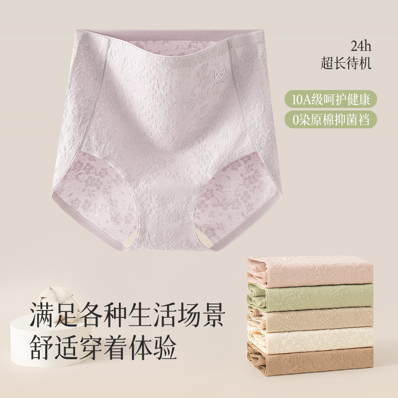 猫人A类纯棉内裤 女无痕10A抗菌加长裆少女生高腰收腹三角2025新款