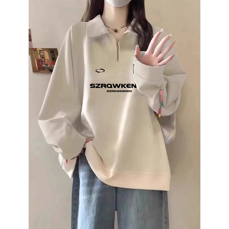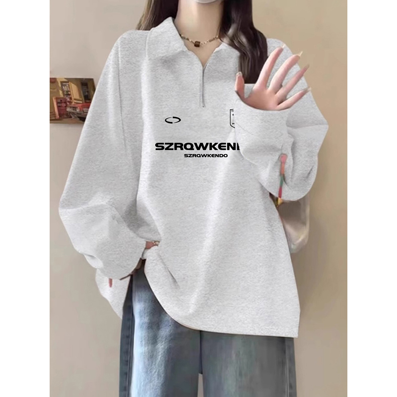 polo领卫衣女潮 200斤宽松显瘦上衣胖mm加厚遮肚韩版 2025新款 大码