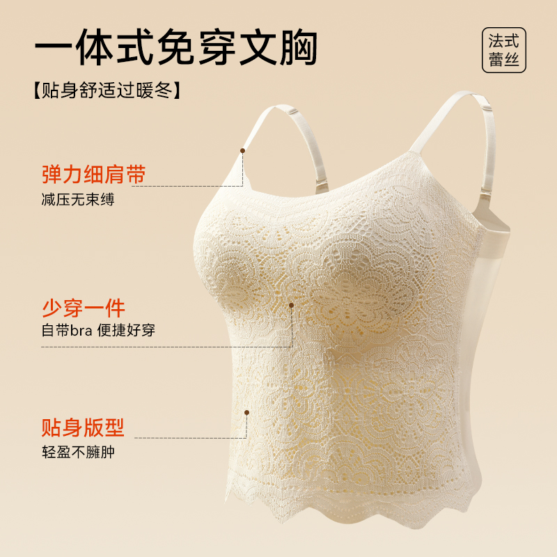 可外穿 内搭打底衫 古今法式 蕾丝吊带背心女带胸垫保暖内衣2025新款
