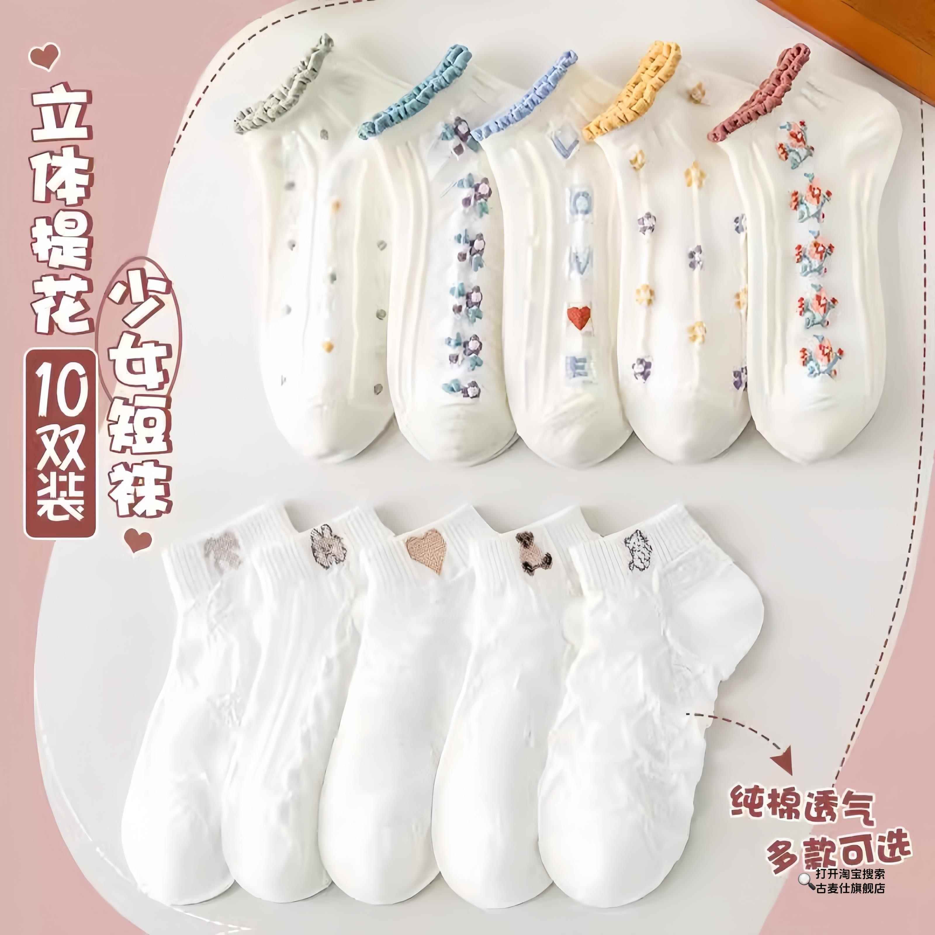 棉袜浅口女士船袜 薄款 袜子女中筒短袜春秋款 纯棉抗菌防臭吸汗新款