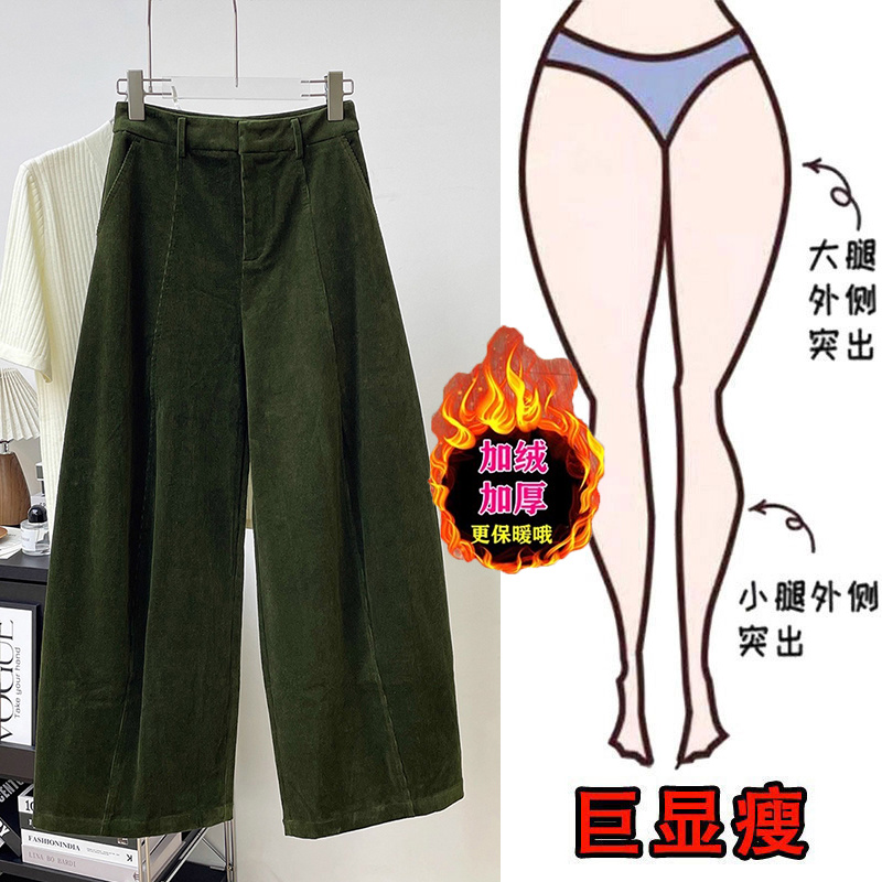宽松阔腿香蕉镰刀裤 秋冬新款 女高腰拖地长裤 复古灯芯绒休闲裤 大码
