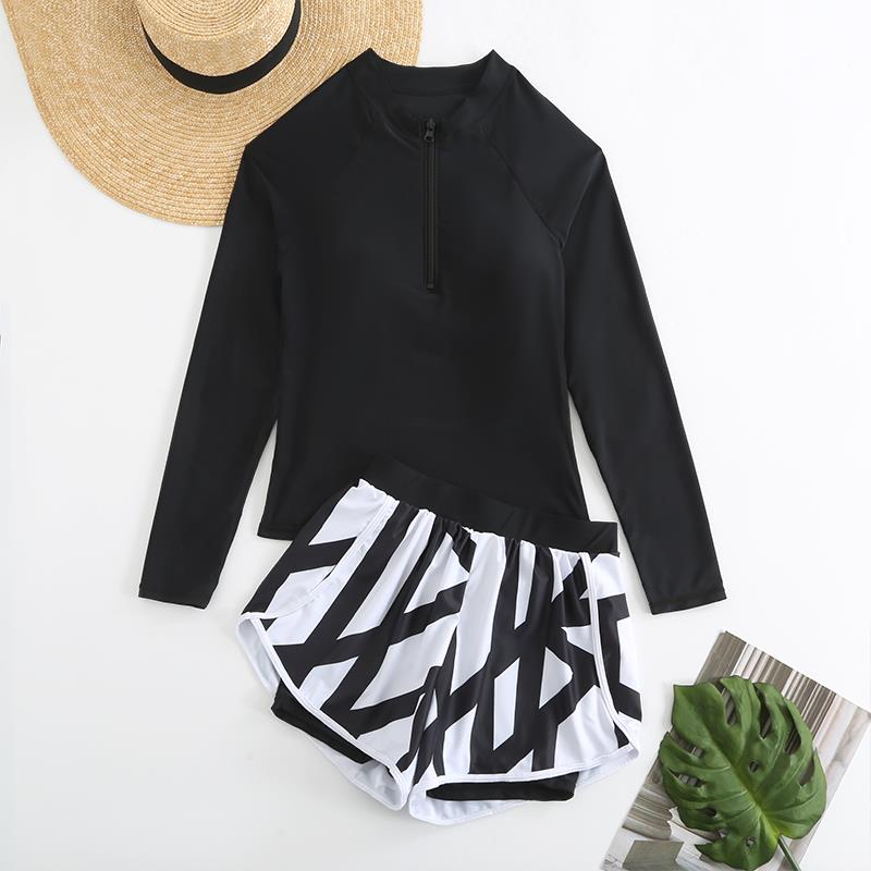 泳装 平角裤 分体运动保守大码 成人长袖 1005c 游泳衣女士款