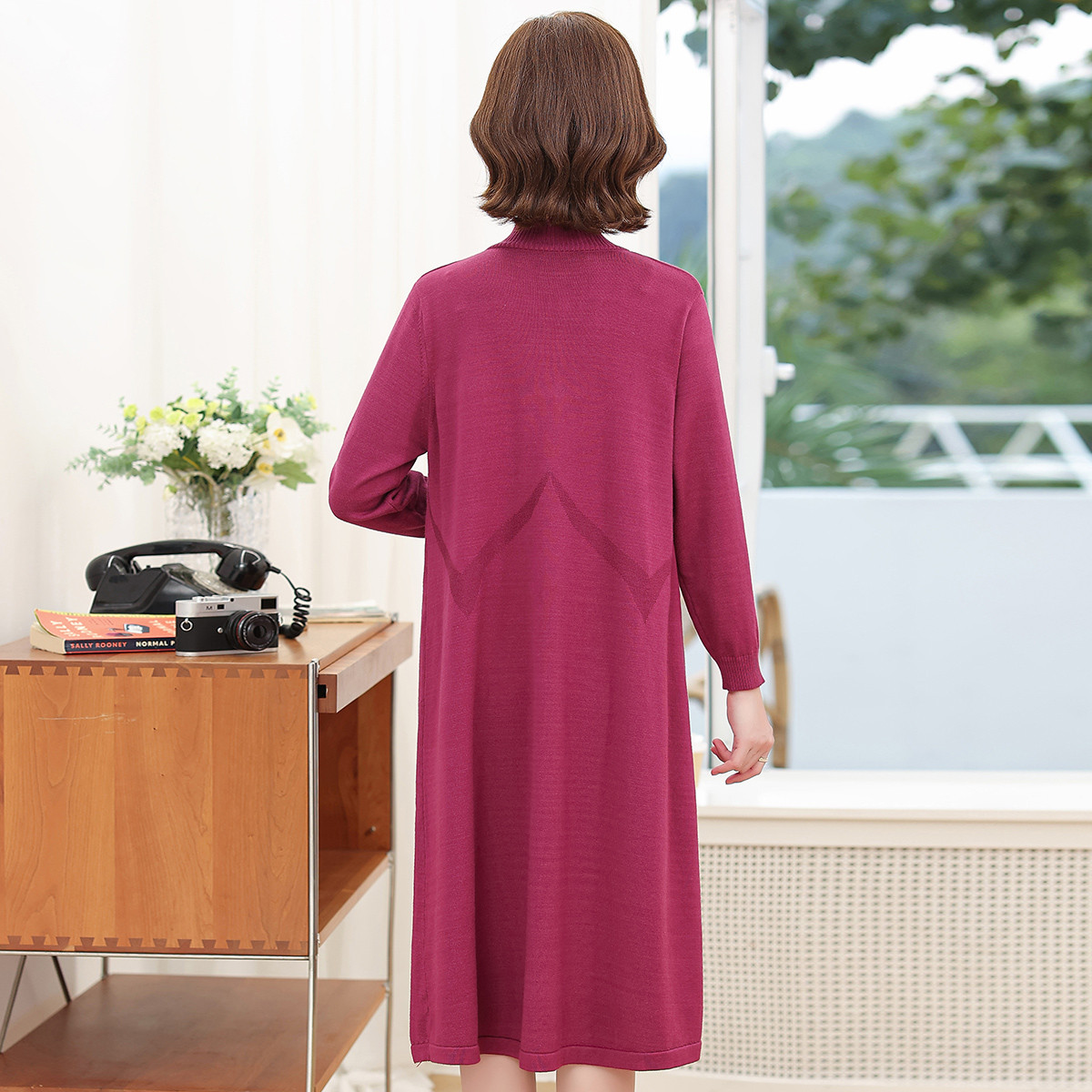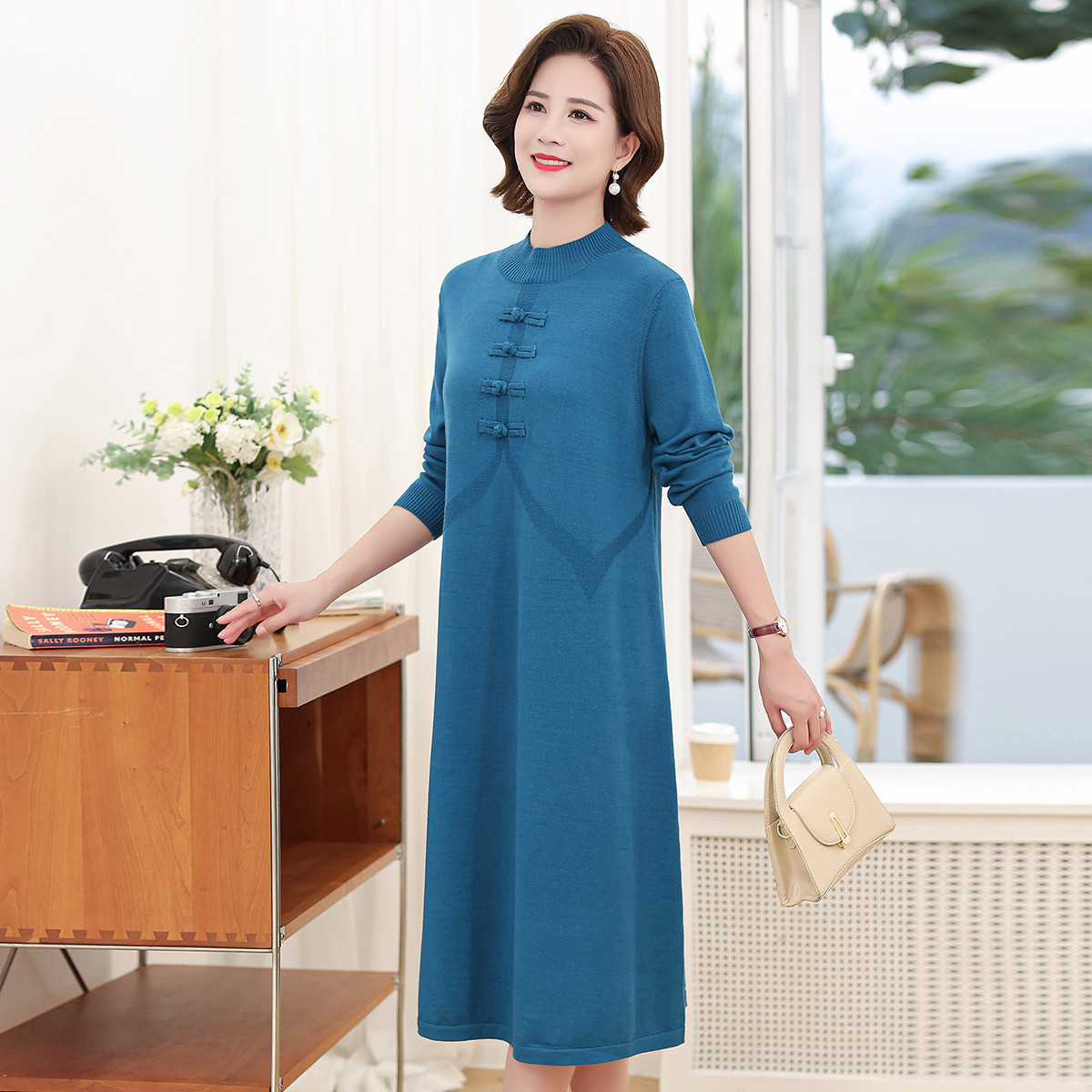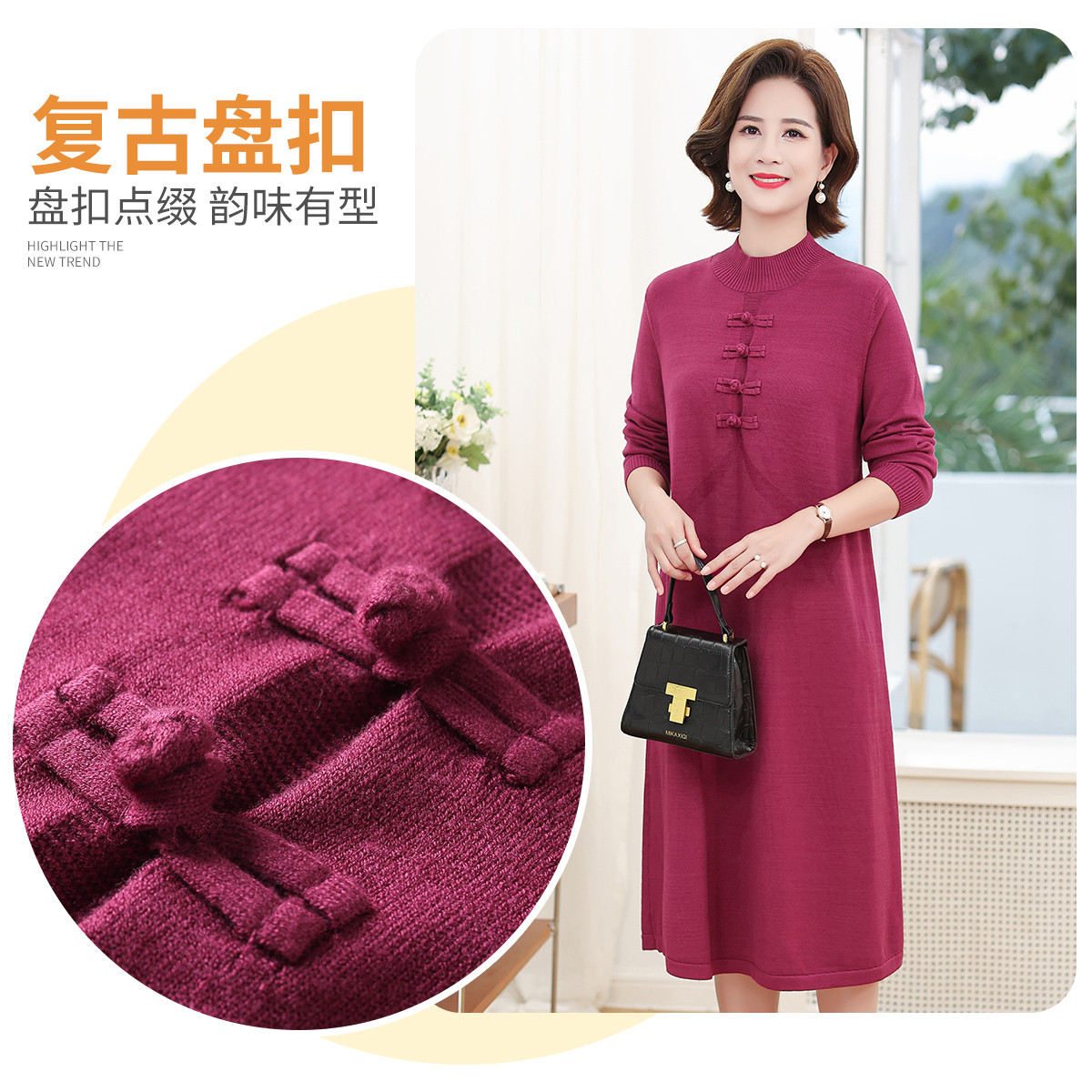 台格春秋季 宽松中国风气质裙 针织连衣裙妈妈中老年半高领盘扣长袖