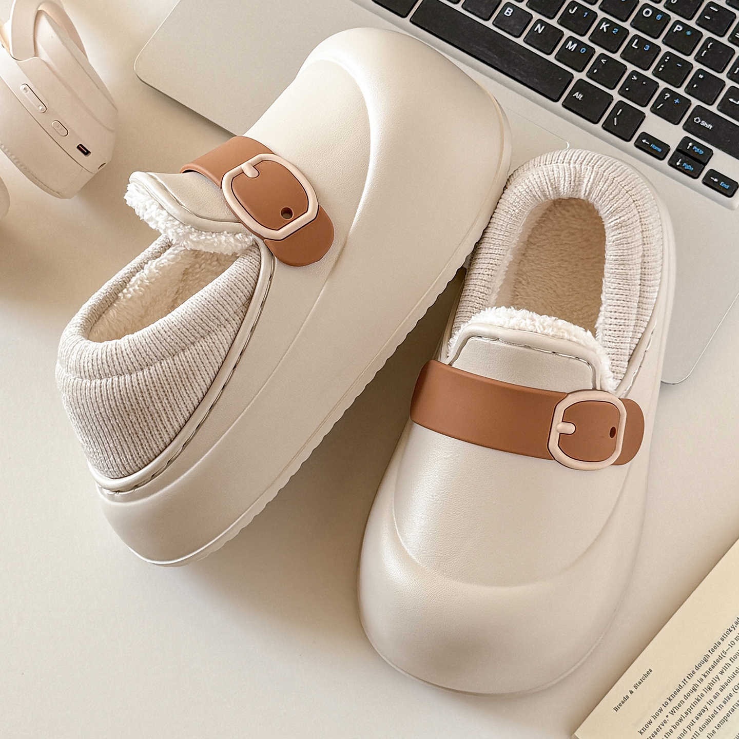 D1P1DAH5预 加毛厚底包头休闲鞋 方枪枪同款 百丽厚切吐司勃肯拖鞋