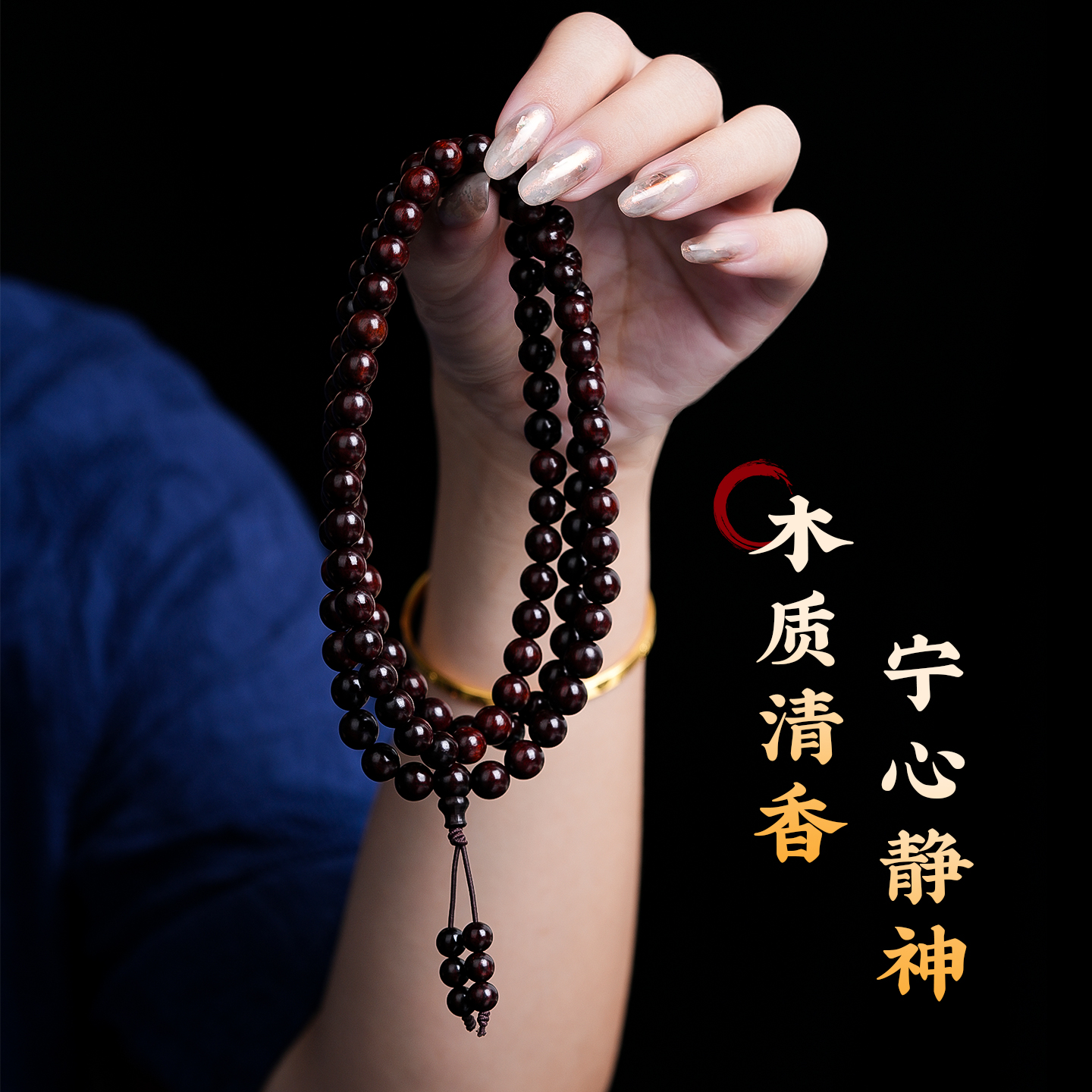 庆祥泰天然印度小叶紫檀手串男士 木佛珠手链 108颗官方旗舰店女款
