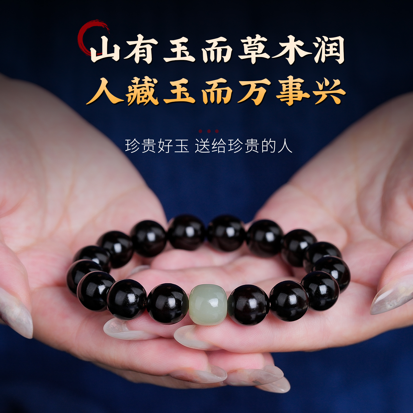 天然印度小叶紫檀手串男女黑檀木佛珠金丝楠木手链和田玉文玩盘玩