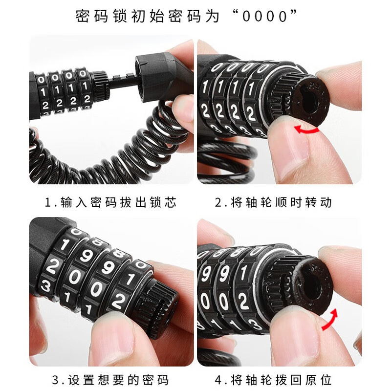自行车头盔锁4位密码 钢丝锁自行车头盔防盗锁钢缆锁锌合金锁头