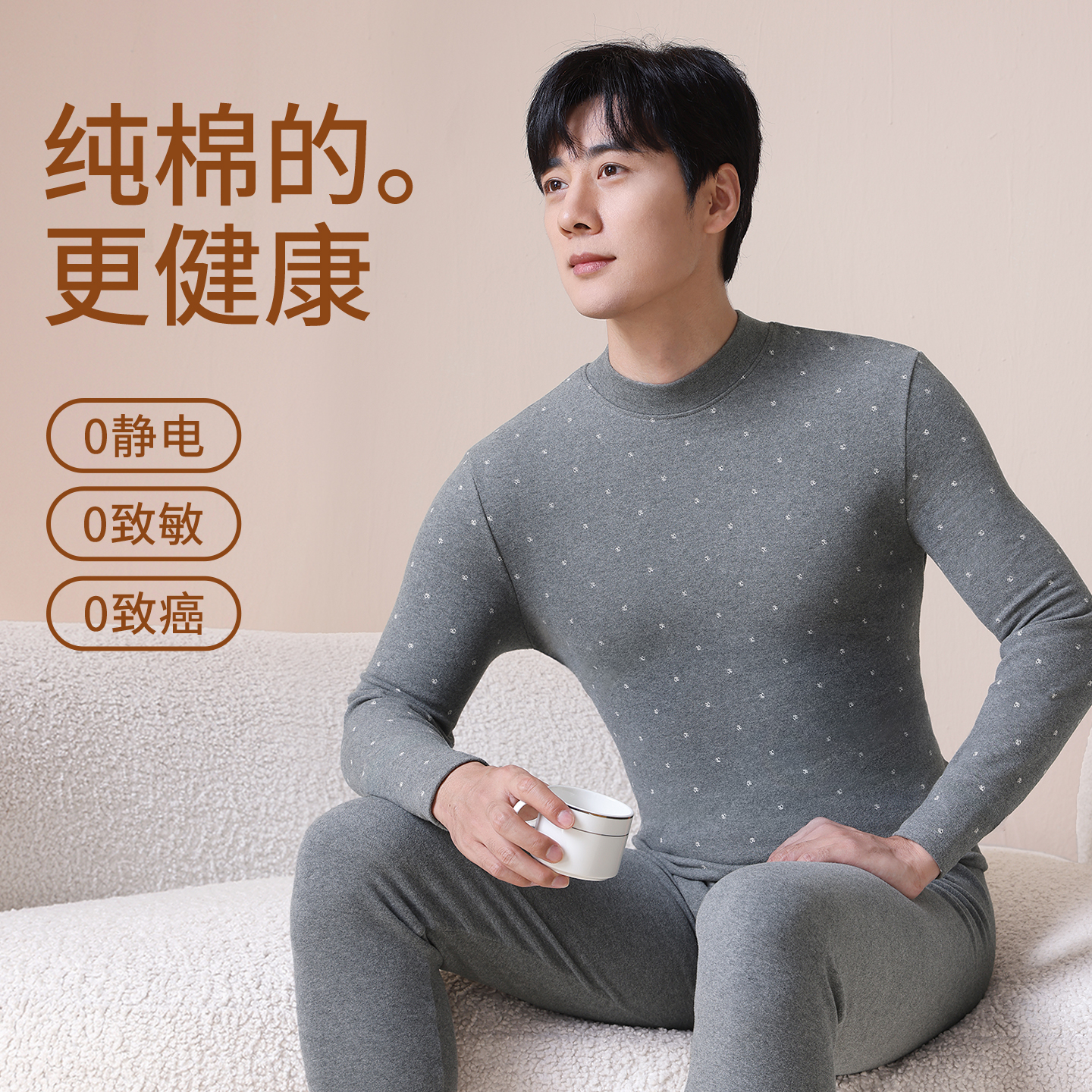 秋衣秋裤 中年爸爸印花磨绒加厚抗寒棉毛衫 套装 新一步保暖内衣男士