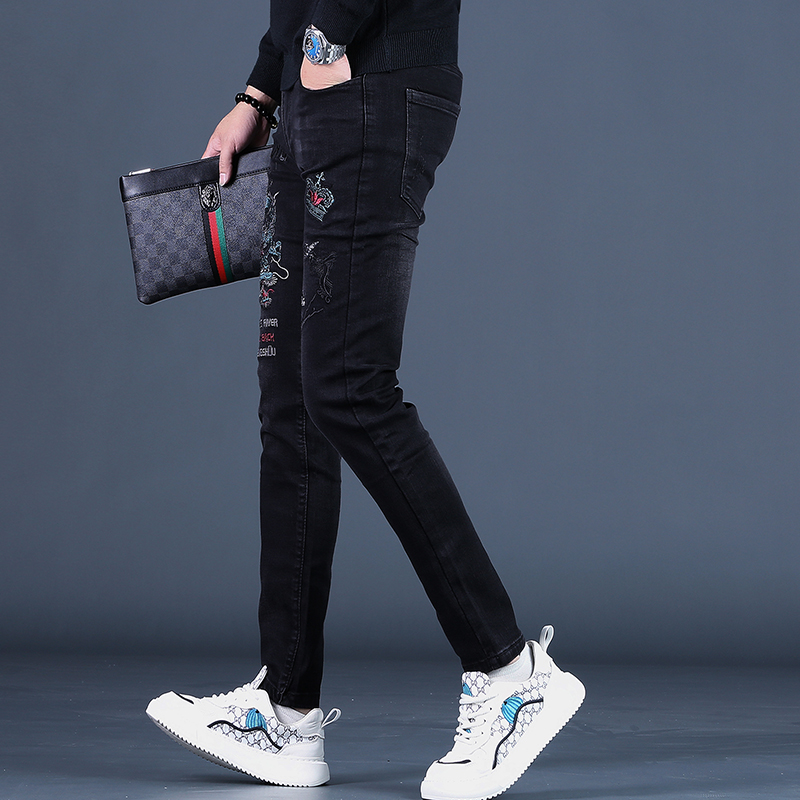 不易褪色弹力 基础通勤森柔牛仔直筒裤 小黑牛森马牛仔裤 男25春新款