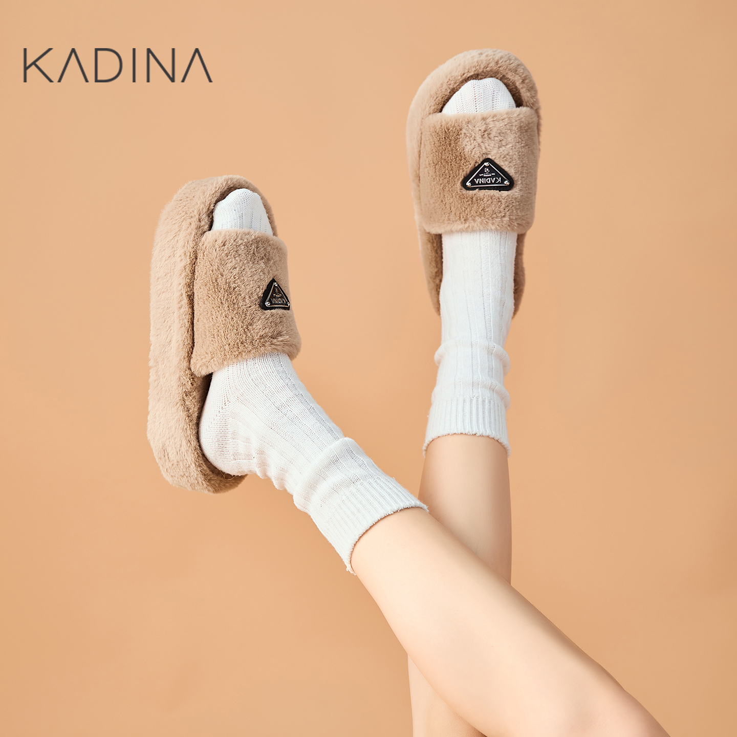 厚底棉拖鞋 2025秋冬季 女外穿一字拖潮鞋 百搭毛毛拖鞋 网红豹纹时尚