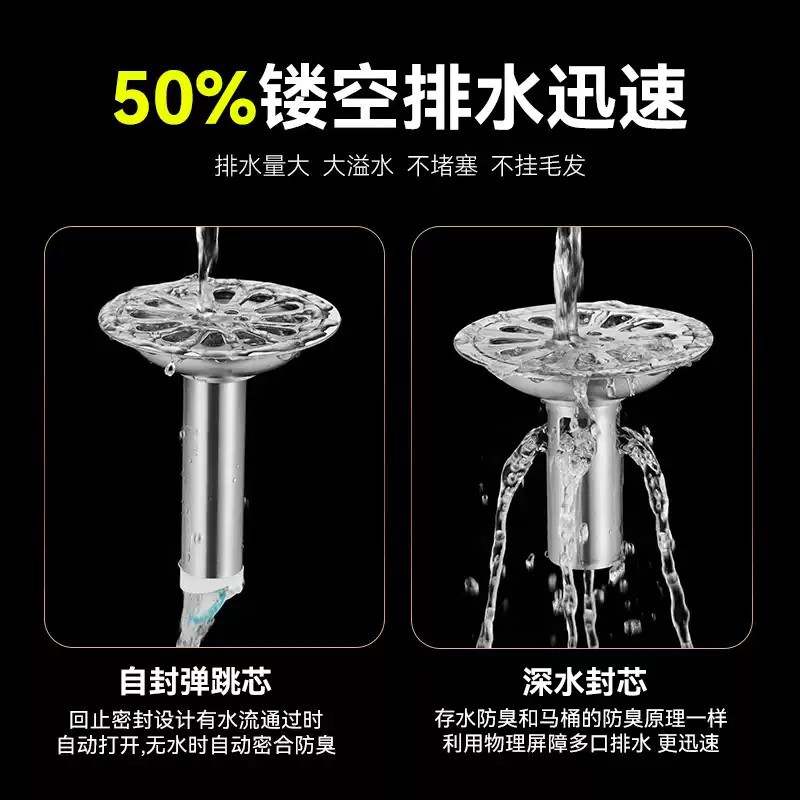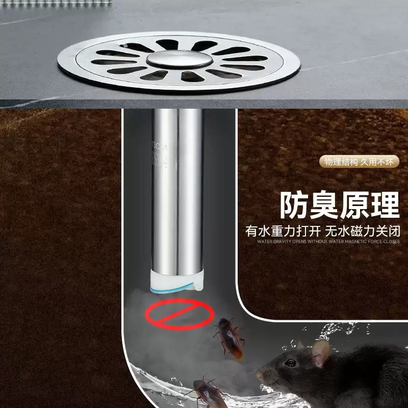 潜水艇深水封地漏防臭器卫生间下水道防臭内芯神器防虫不锈钢芯盖