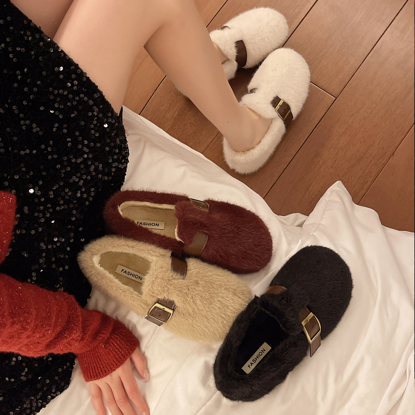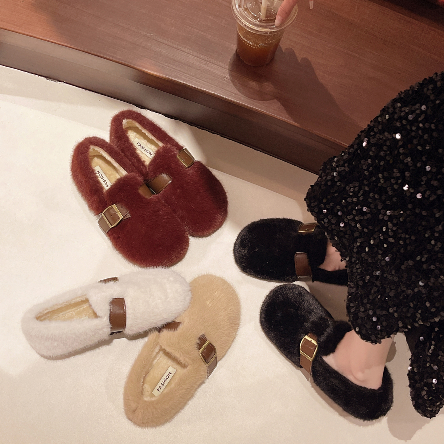 商品标签:韩版白色毛毛鞋