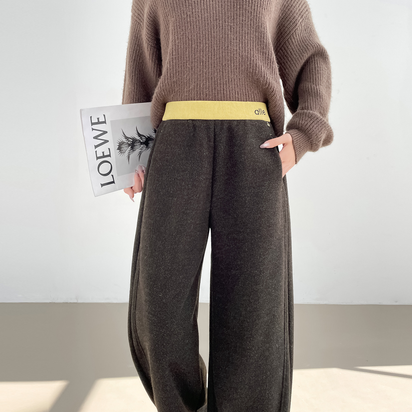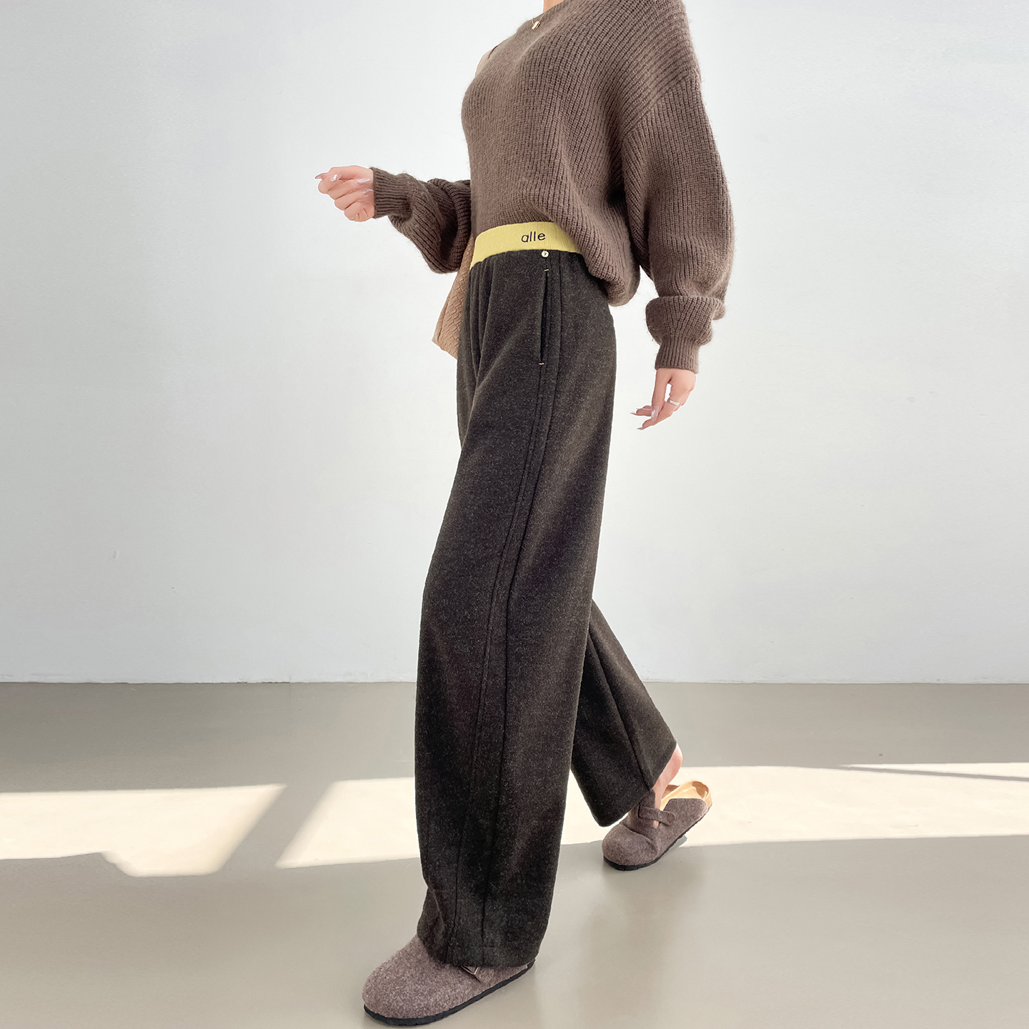 高级宽松bf慵懒垂感直筒加绒休闲阔腿裤 2025新款 子女春秋季 糯米裤