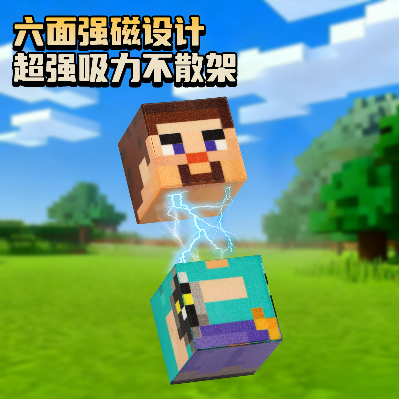 我 手办礼物 世界磁力方块积木公仔玩具可动人偶全套磁吸玩偶拼装