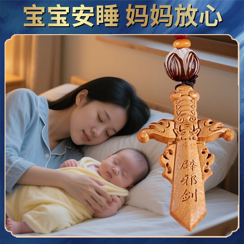 儿童专用桃木剑吊坠桃木小挂件男女宝宝儿童朱砂小孩红绳随身吊坠