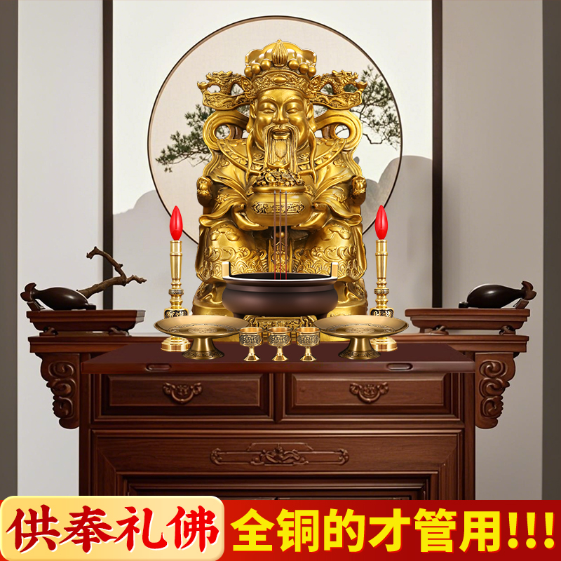 黄铜香炉供奉套装 上香炉财神观音供佛神像佛具水果盘圣水杯蜡烛台