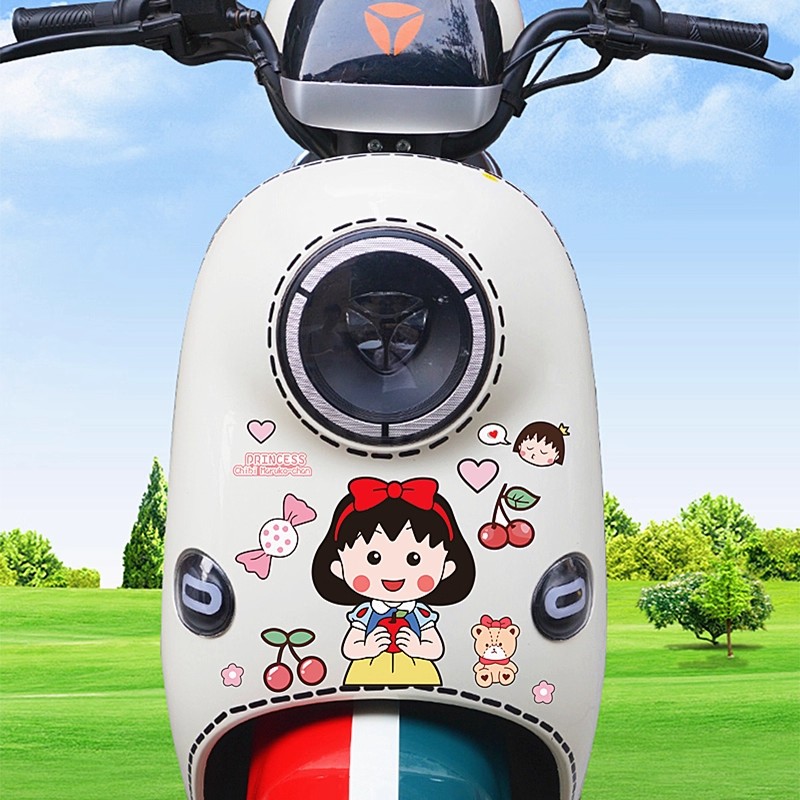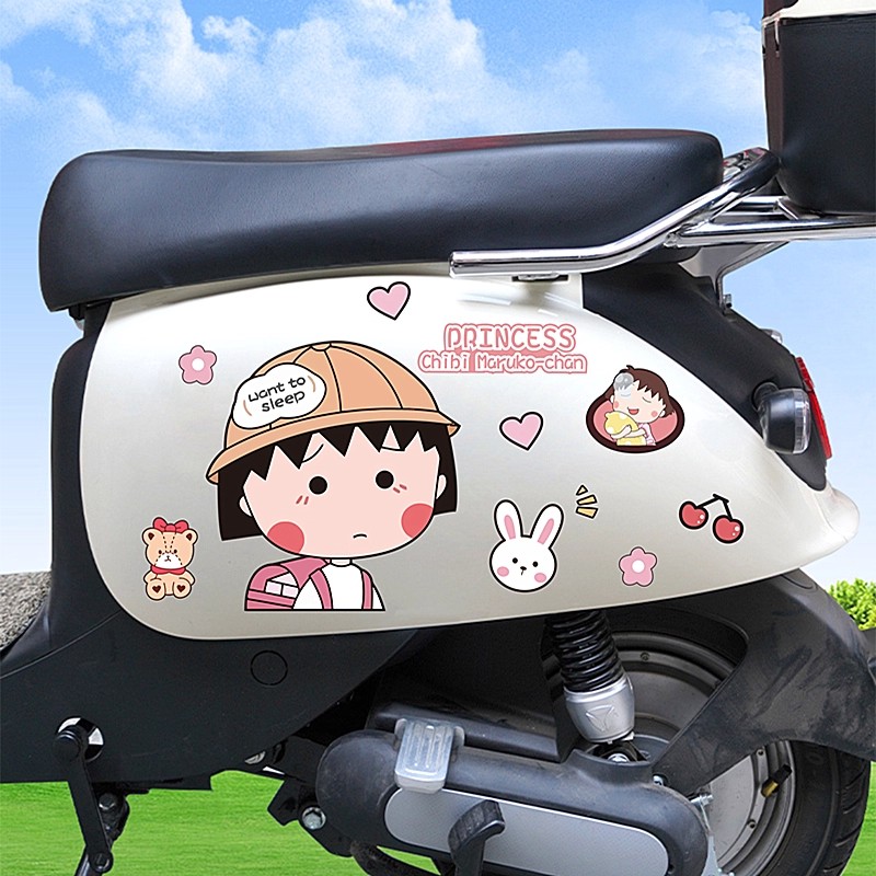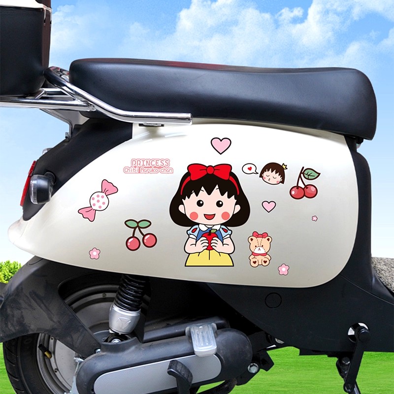 电动车贴纸摩托电瓶车樱桃小丸子可爱卡通车身装 饰防水划痕贴遮挡