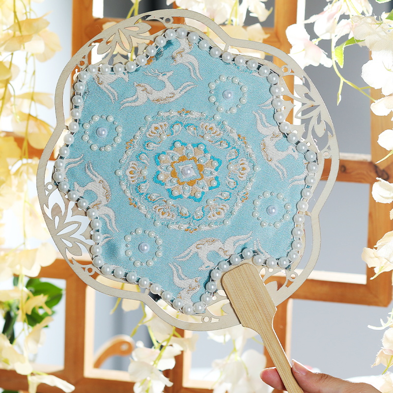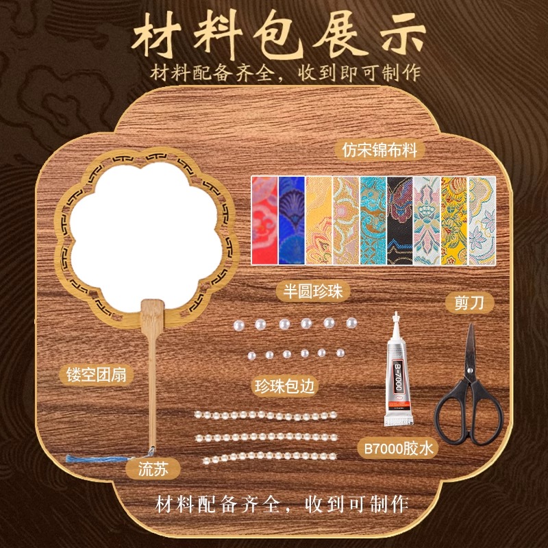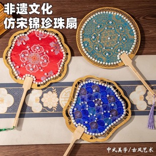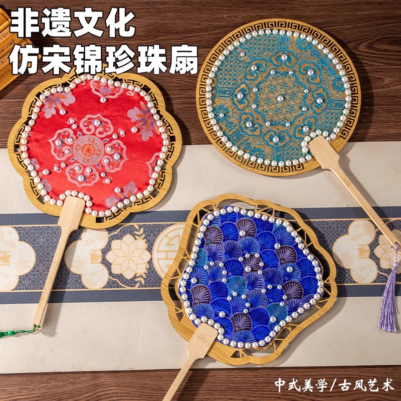 国风非遗宋锦珍珠扇子古风女孩玩具儿童手工团扇diy材料生日礼物