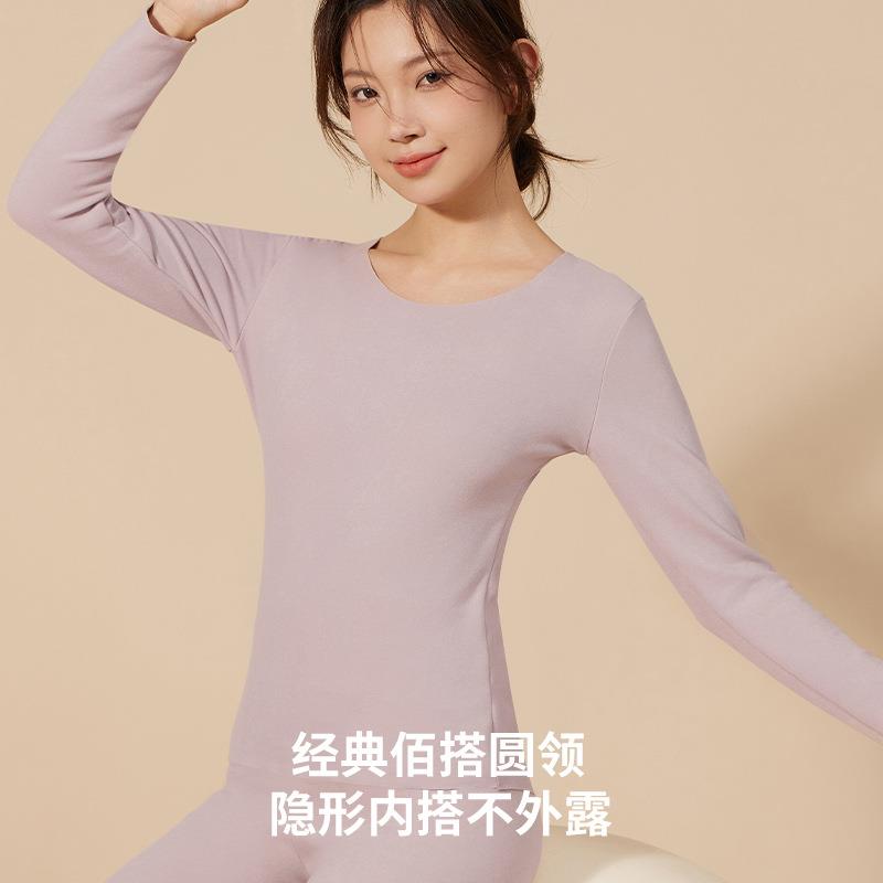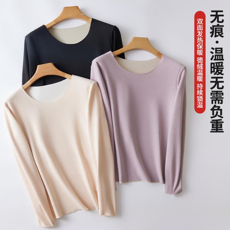 打底衫 无痕修身 内穿保暖上衣女加绒 保暖内衣女士冬季 德绒圆领长袖