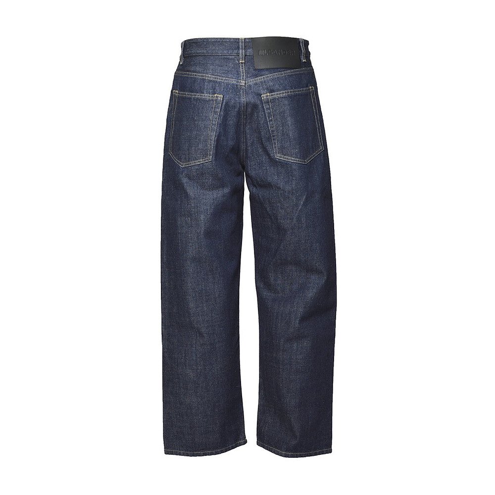子男秋 直筒深蓝宽松休闲阔腿老爹长裤 马登工装 复古水洗丹宁牛仔裤